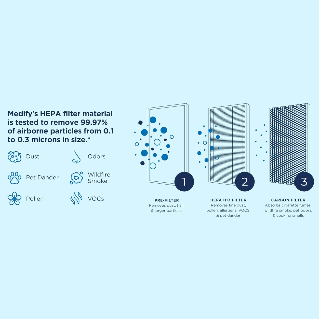 Medify MA-15 با سطح صدای پایین طراحی شده تا در زمان خواب، تماشای تلویزیون یا کار در فضای آرام خللی ایجاد نکند. این خصوصیت آن را برای استفاده در اتاق خواب، دفتر کار و اتاق کودکان مناسب میکند.