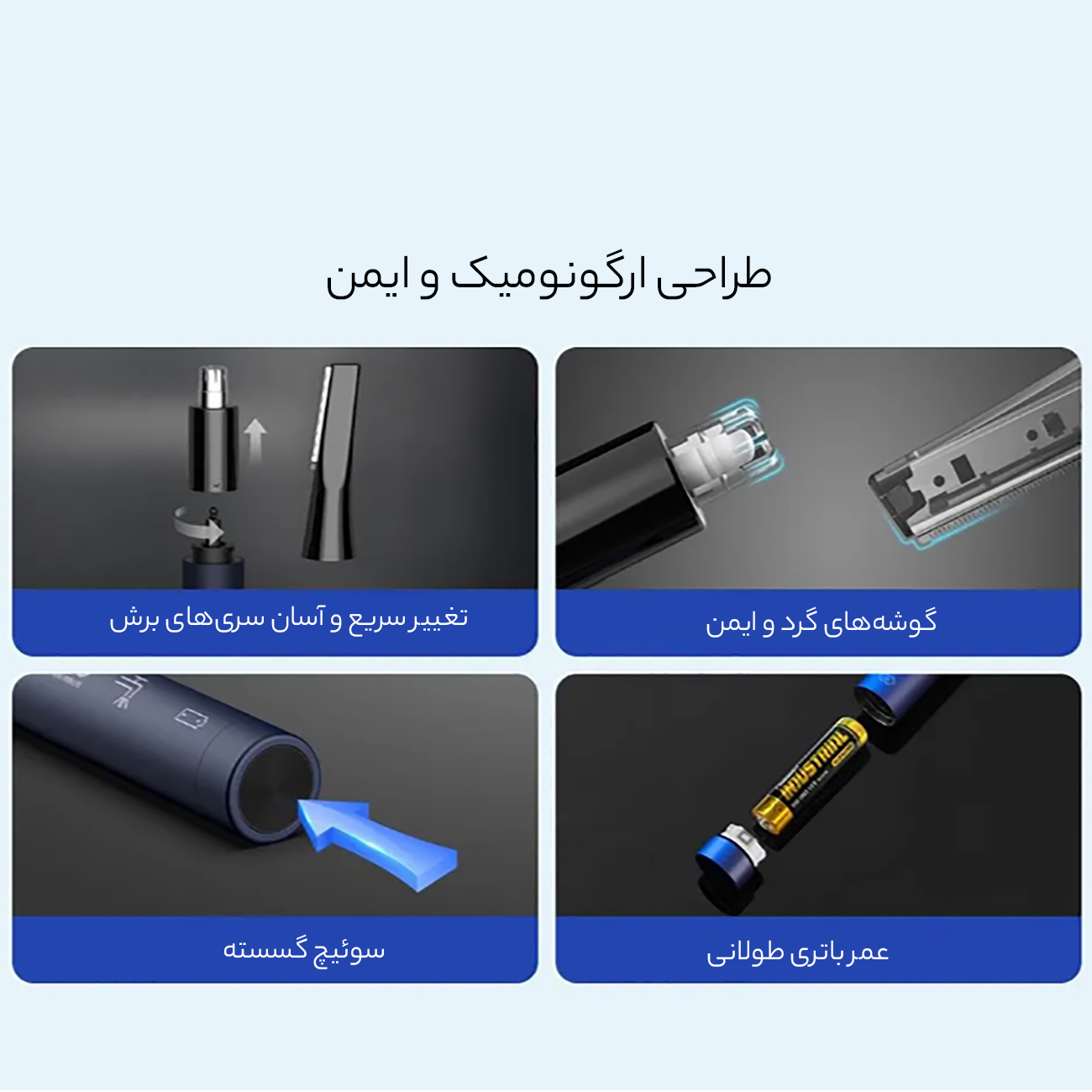 | کاربری بالا | برای کوتاه کردن ابروها و سبیل ها و ایجاد فرم دلخواه ریش یا سبیل |