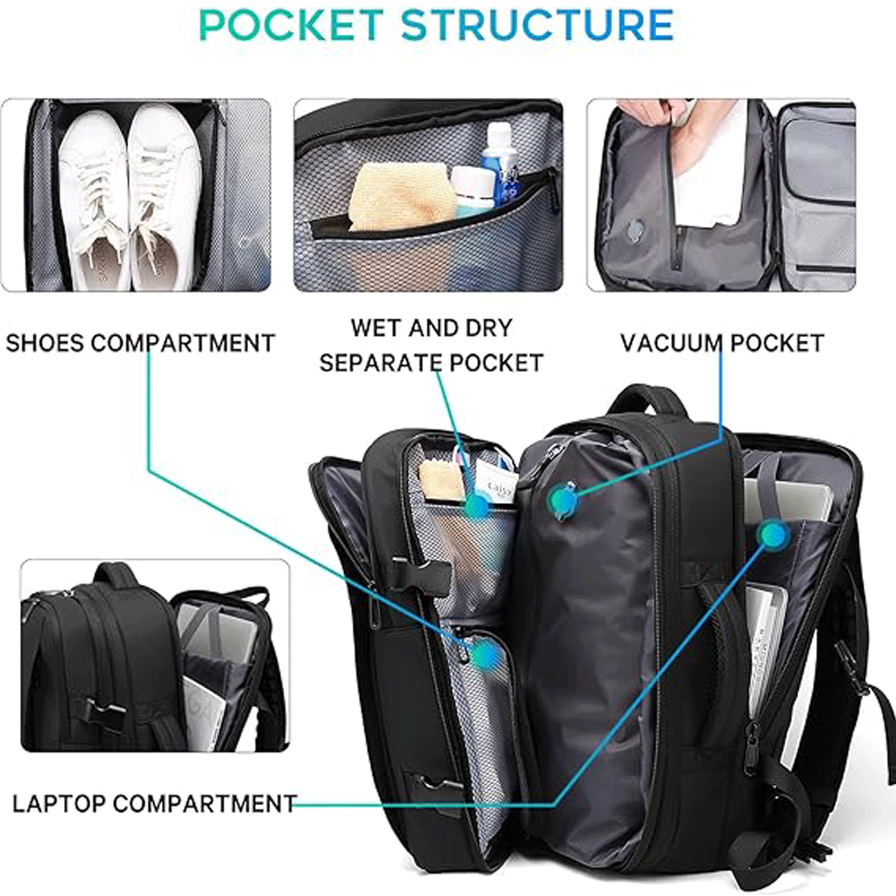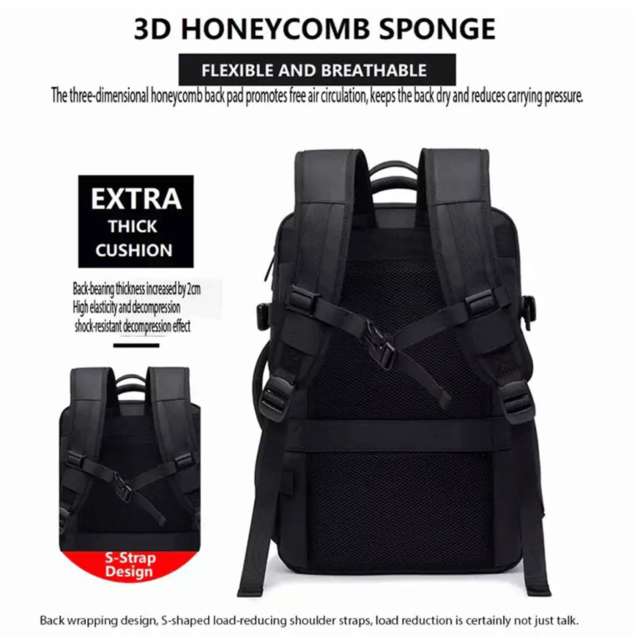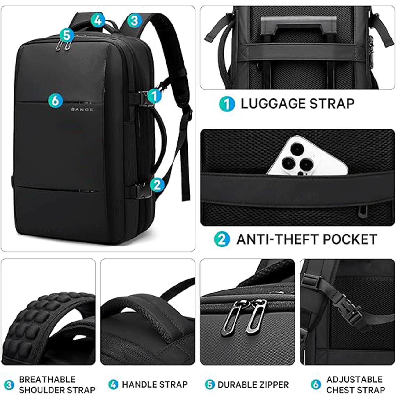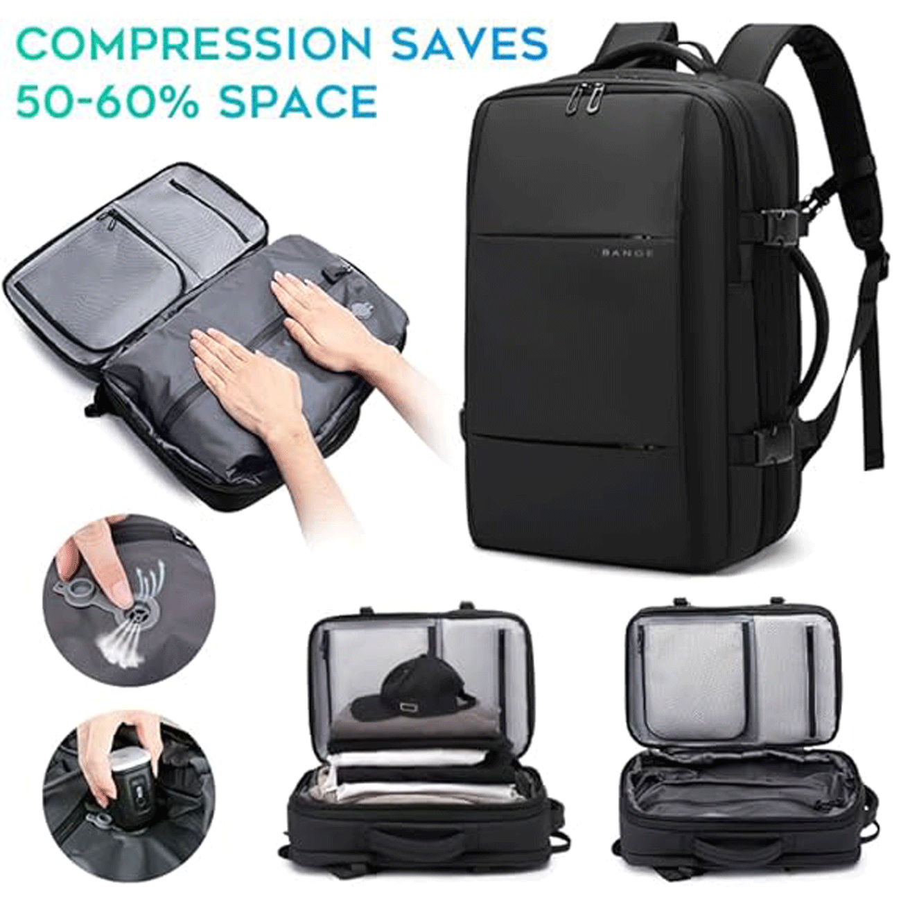 Bange BG-3028 36L Expandable Travel Backpack With Vacuum Compartment