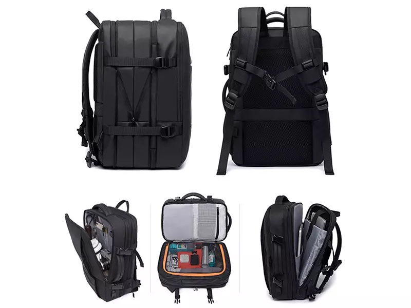 | تعبیه سه جیب مجزای زیپدار در جلوی کوله | |