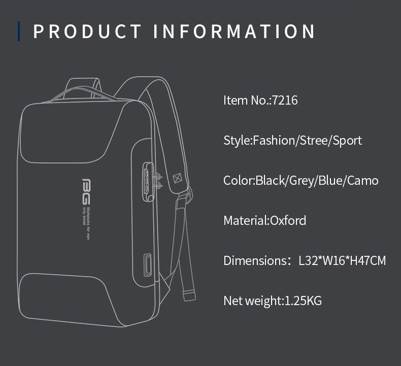 کوله پشتی حرفه ای ضد آب لپ تاپ 15.6 اینچ بنج (BANGE ) دارای پورت USB مدل BG-7216