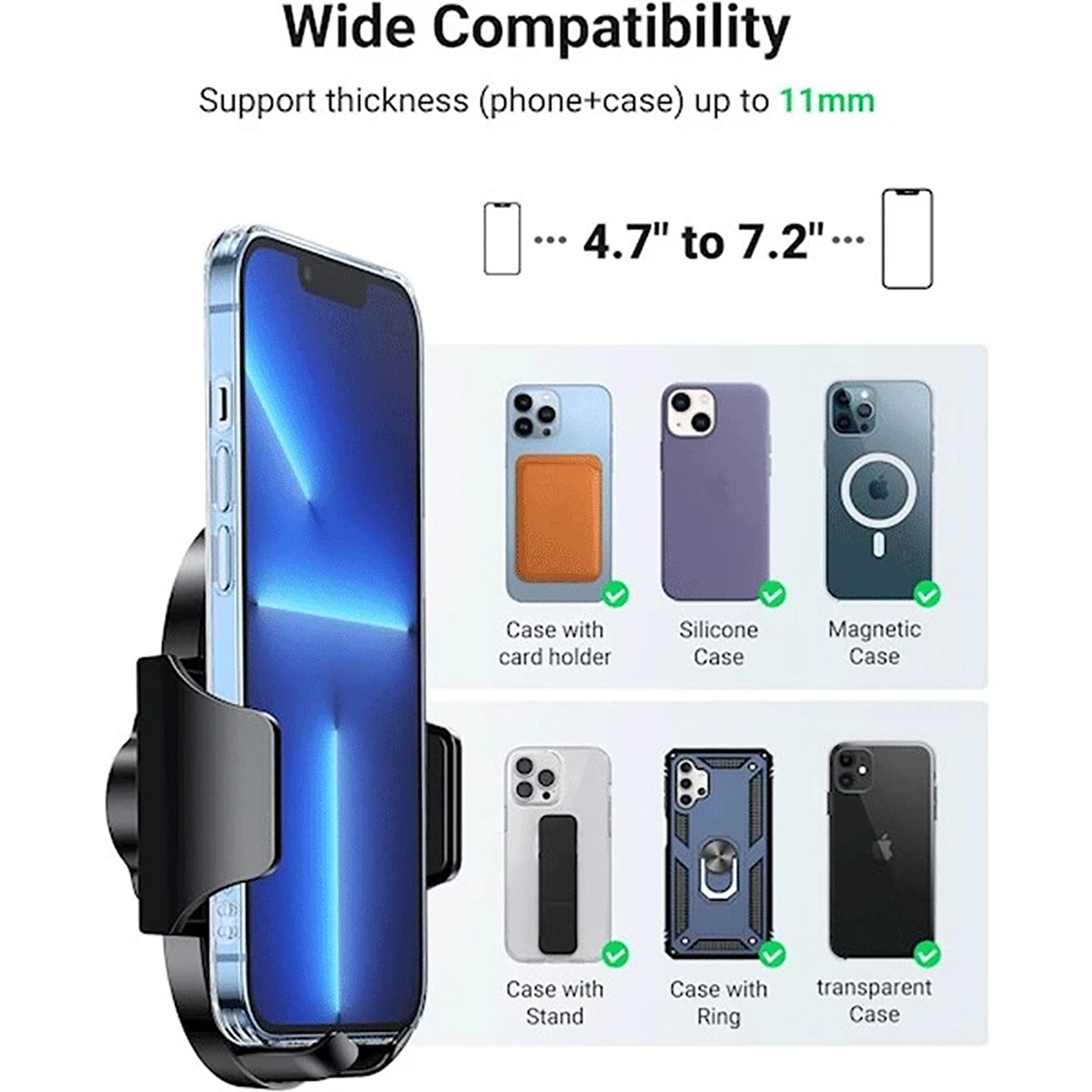 | ضخامت قابل پشتیبانی ( گوشی و قاب) | تا 11 میلی متر |