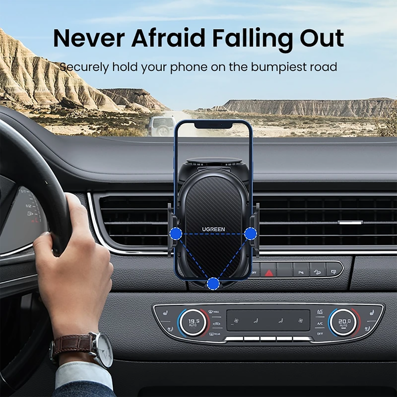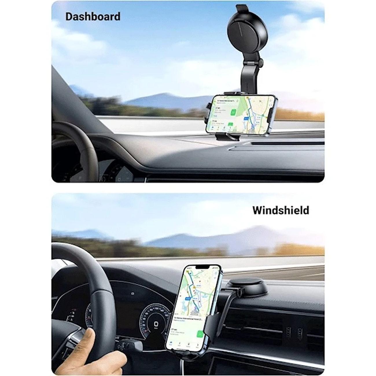 این هولدر با طراحی حرفهای، پایه مکشی قوی و قابلیت تنظیم زاویه و ارتفاع، گزینهای عالی برای افرادی است که هنگام رانندگی به دسترسی راحت و ایمن به گوشی نیاز دارند.