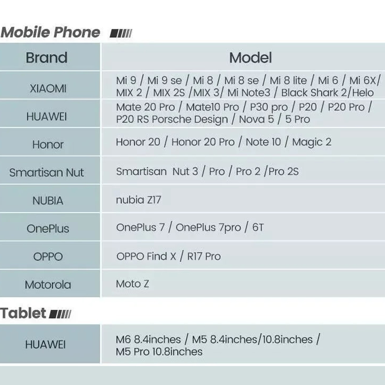 | سازگاری دستگاه ها | گوشیها و تبلتهای دارای پورت USB-C از جمله Huawei، Honor، Xiaomi، OnePlus، Oppo، Motorola و دیگر دستگاههای مشابه |