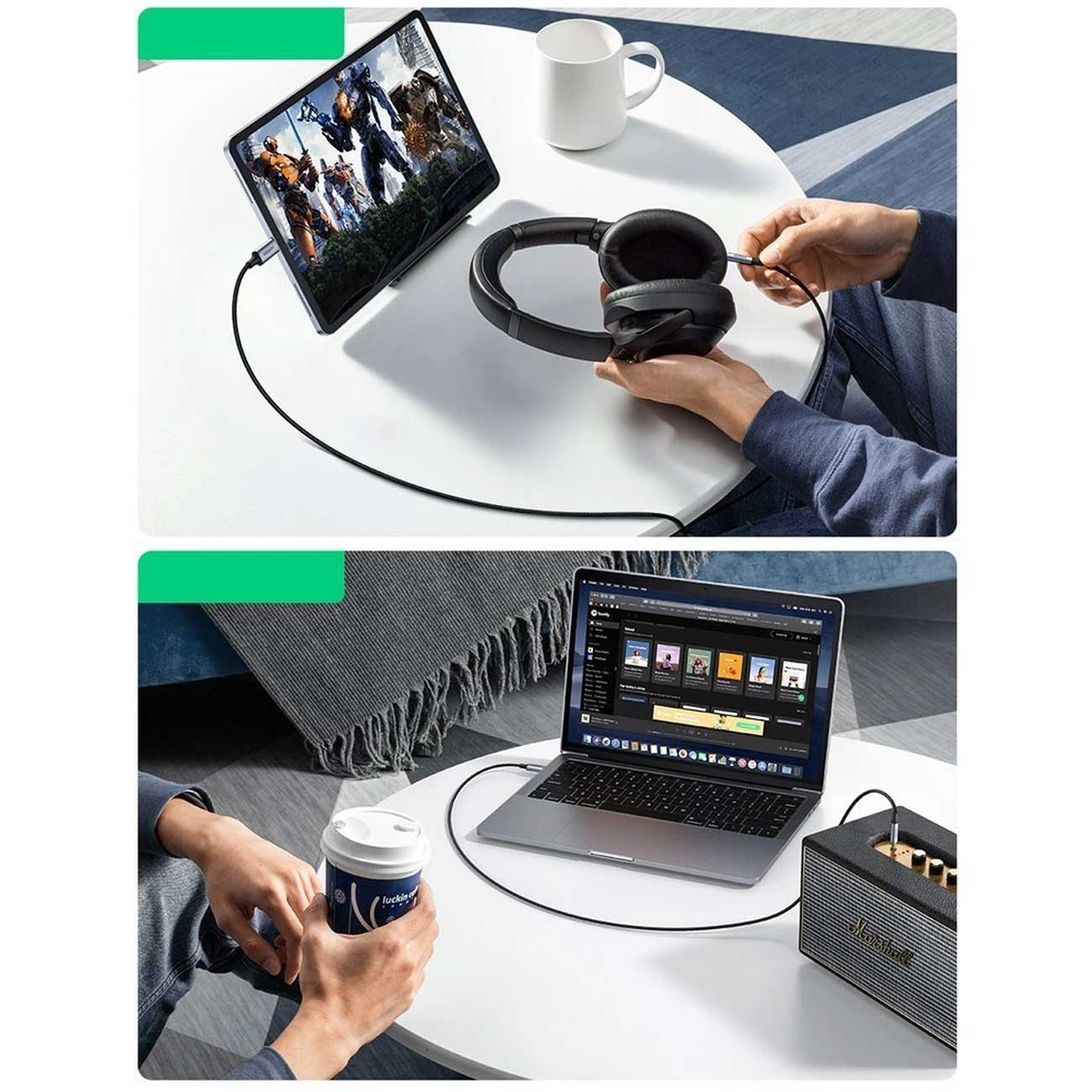 کابل تبدیل تایپسی به جک 3.5 میلیمتری یک متری یوگرین ugreen CM450 20192 با تراشه DAC حرفهای