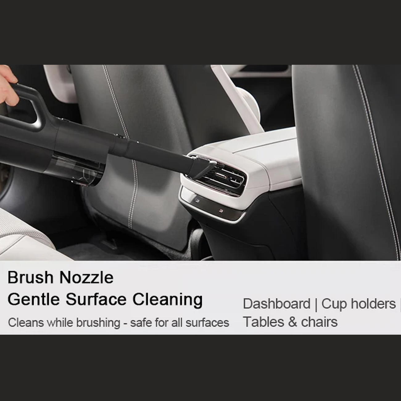 مجهز به چند سری قابل تعویض برای نظافت گوشهها، صندلیها، کف خودرو و سایر سطوح