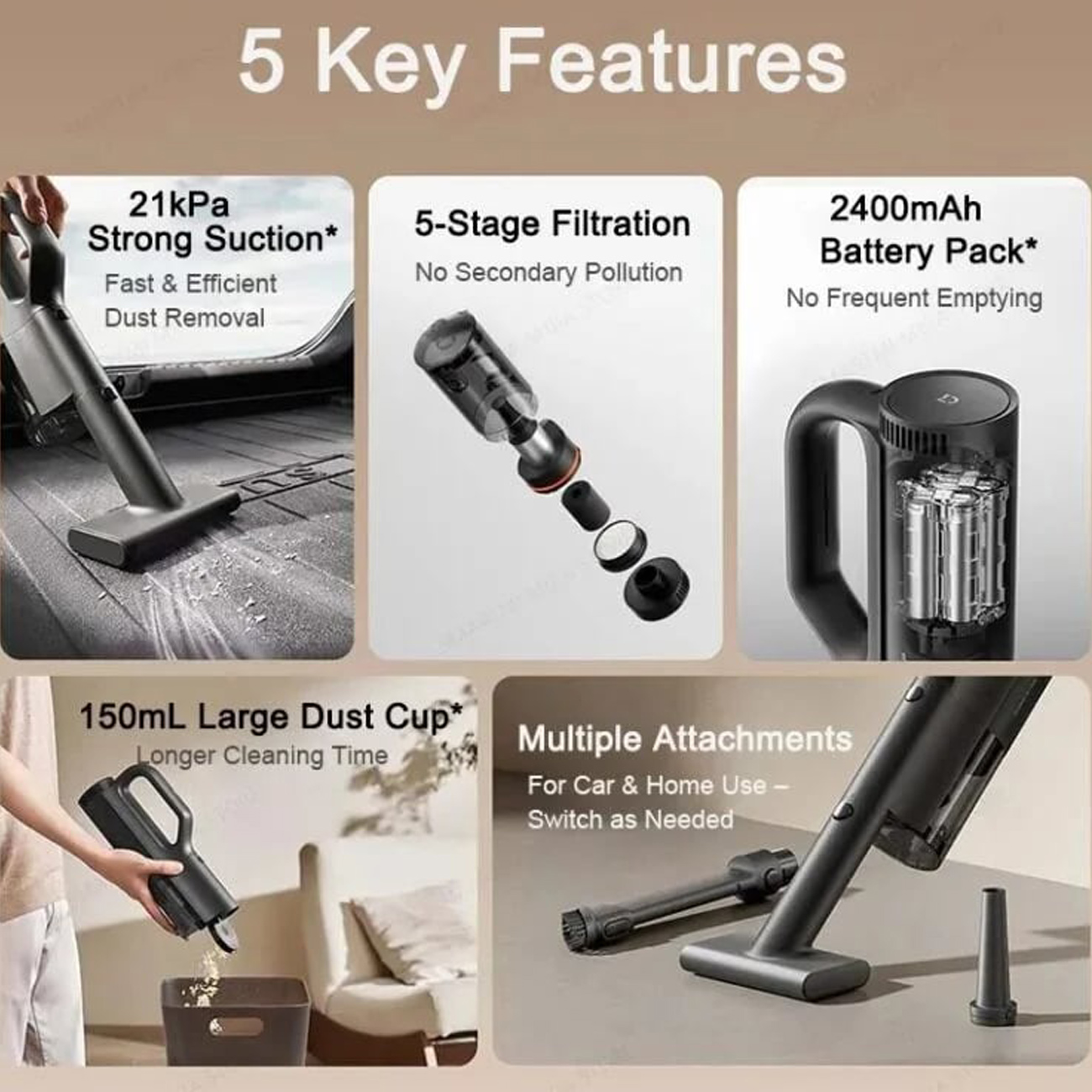 قدرت مکش بالا تا حدود ۲۱ هزار پاسکال برای جمعآوری گرد و غبار، خردههای ریز و مو