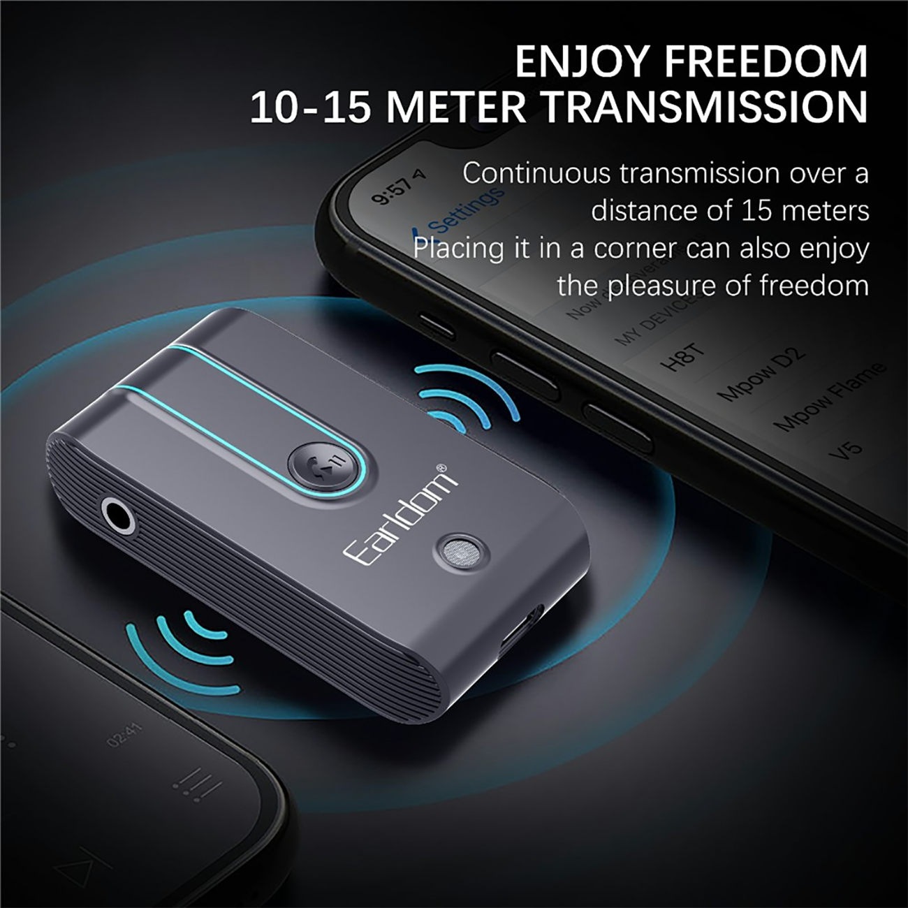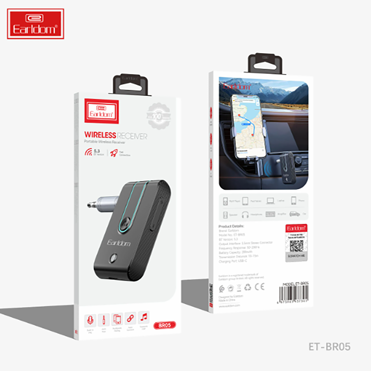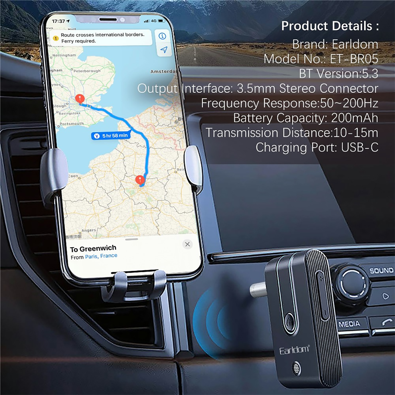 Earldom Et-Br05 Bluetooth 5.3 Wireless Adapter Hand-Free Call 3.5mm Aux Car Audio Speaker Receiver