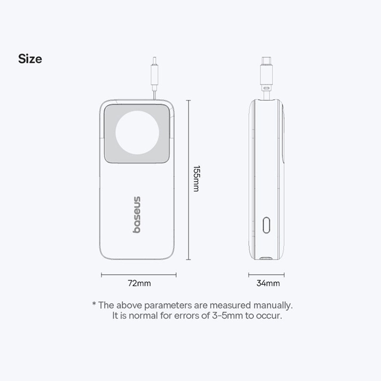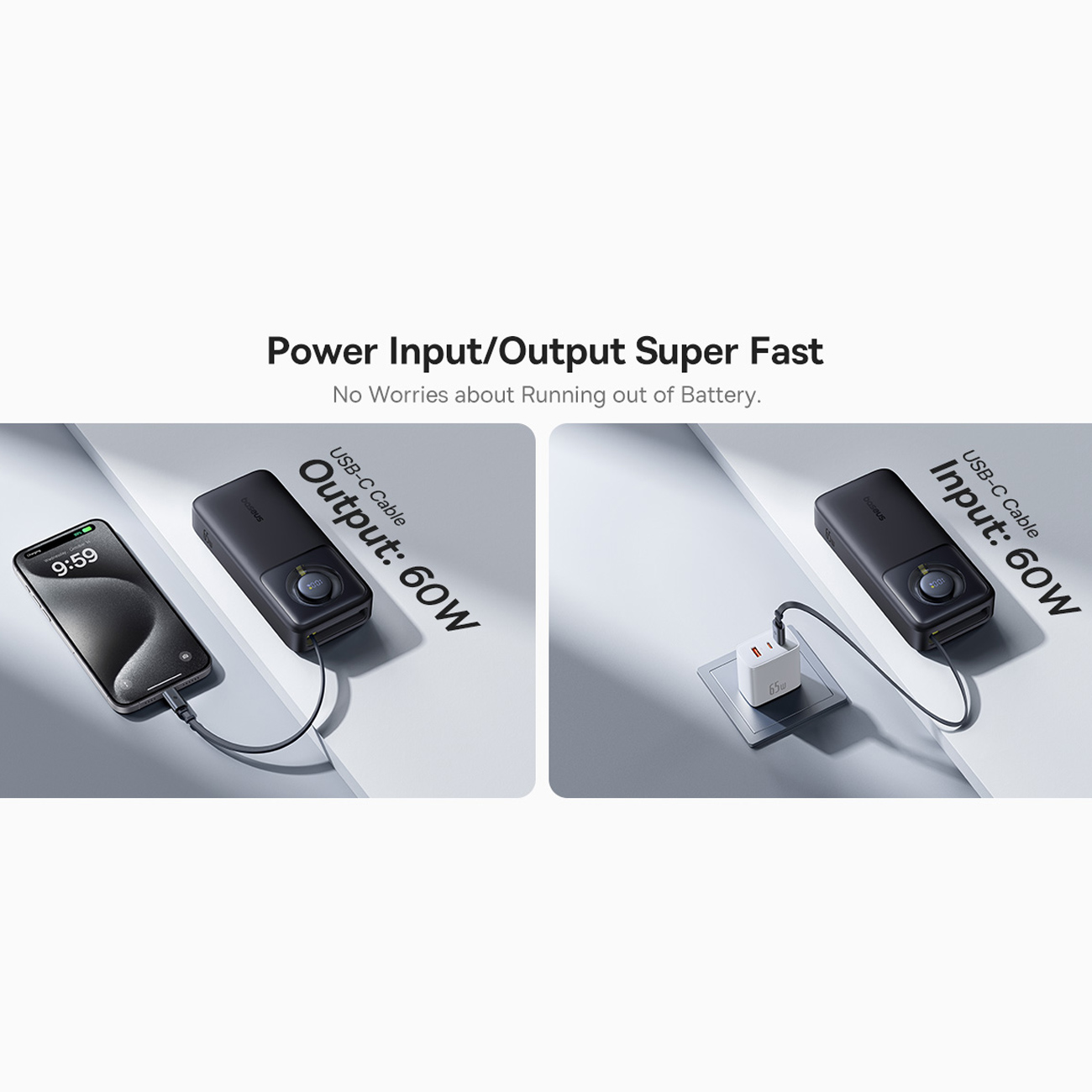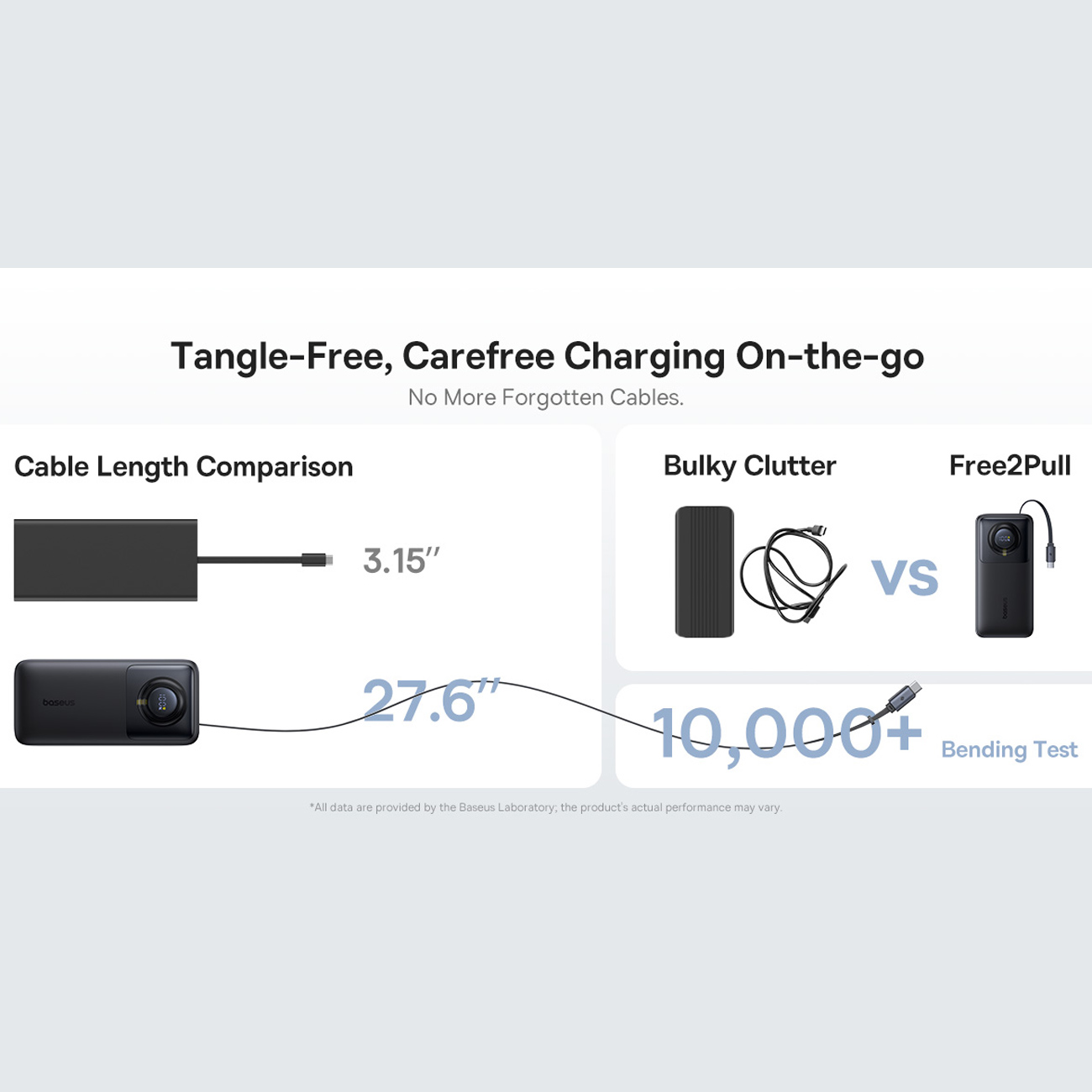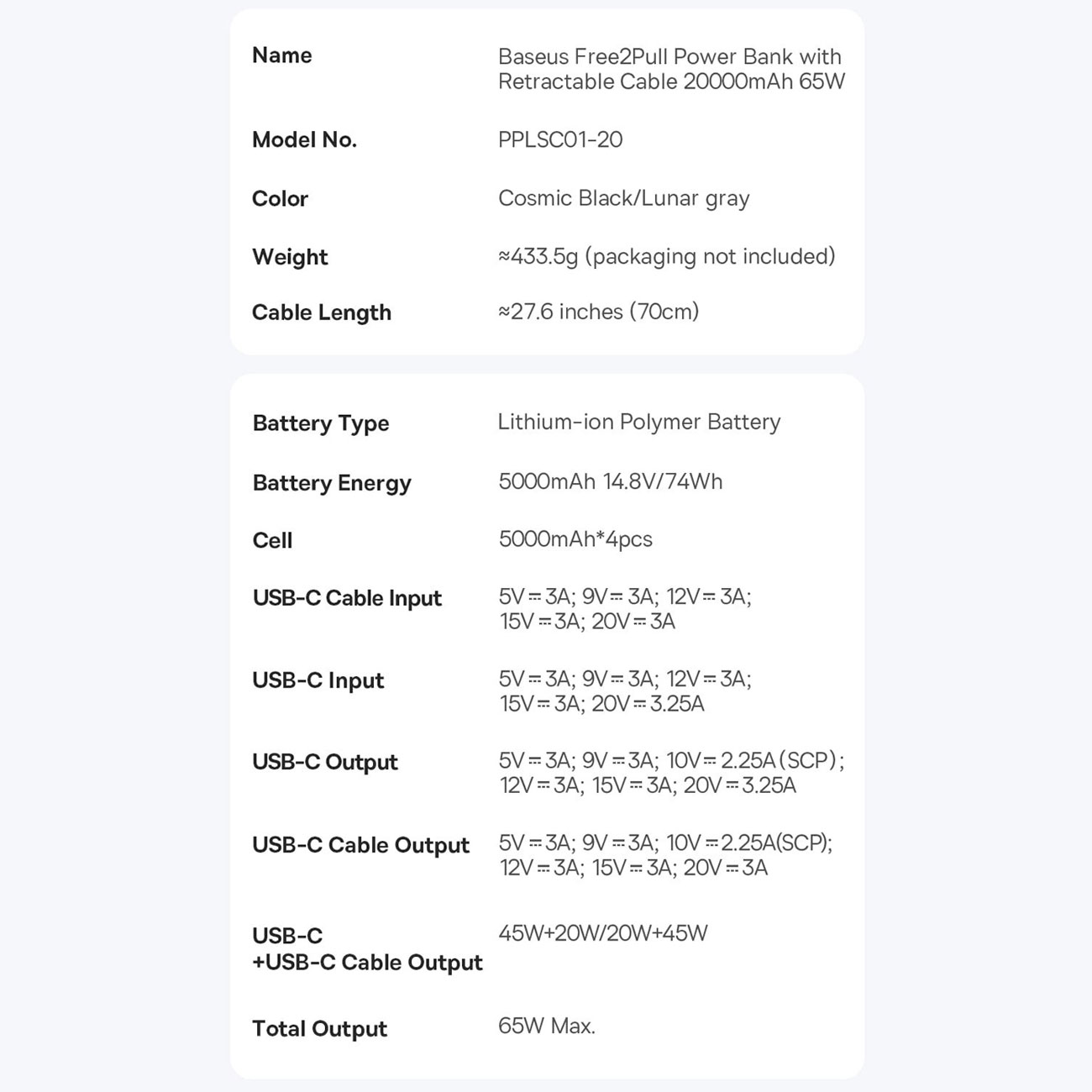 Baseus PPLSC01-20 P10073700123-00 Free2Pull Power Bank with Retractable USB-C Cable 20000mAh 65W
