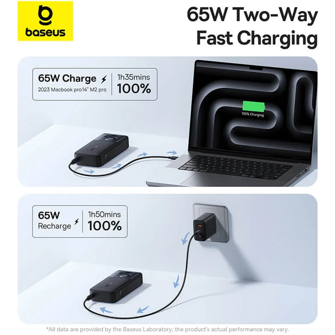 پاور بانک 20000 باسئوس Baseus اصل 65 وات مدل PPLSC01-20 با کابل