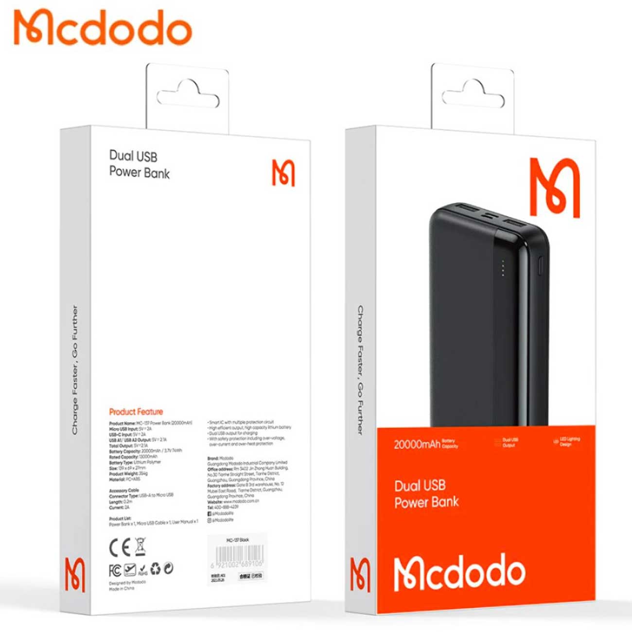 MCDODO MC-1370 DUAL USB POWER BANK WITH LED 20000mAh