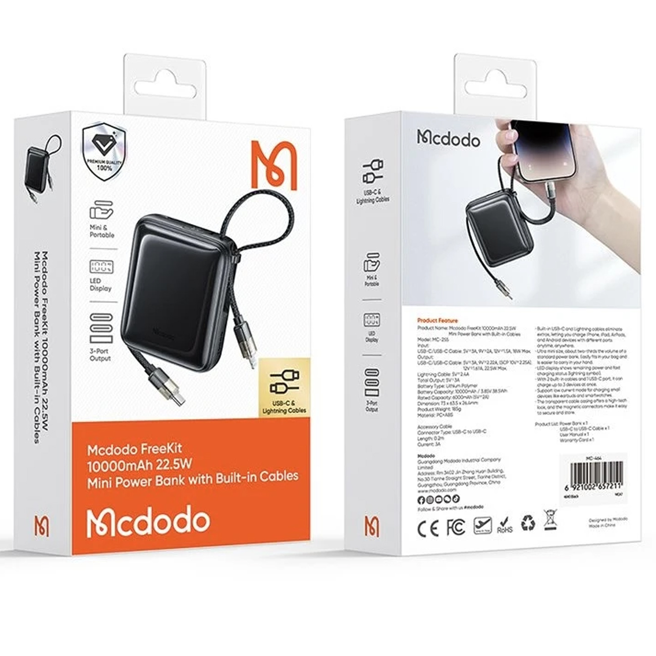 MCDODO MC-255 FreeKit POWERBANK 10000MAH 22.5W PD MINI LED DISPLAY
