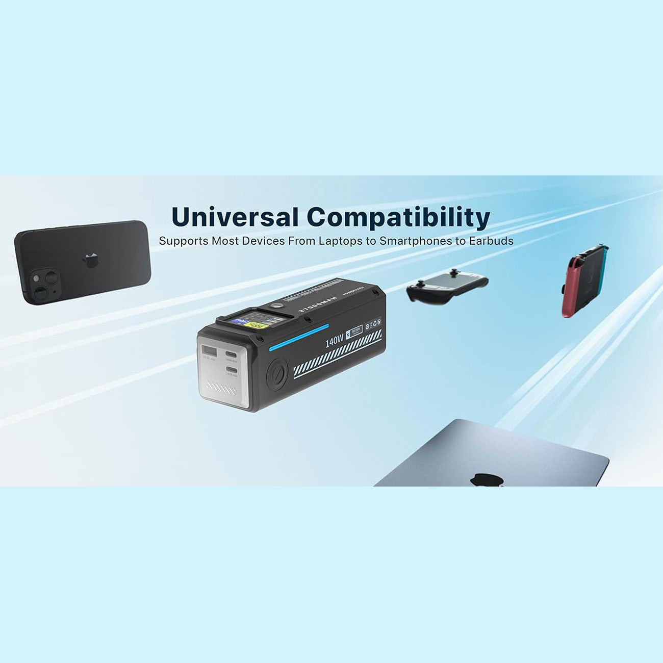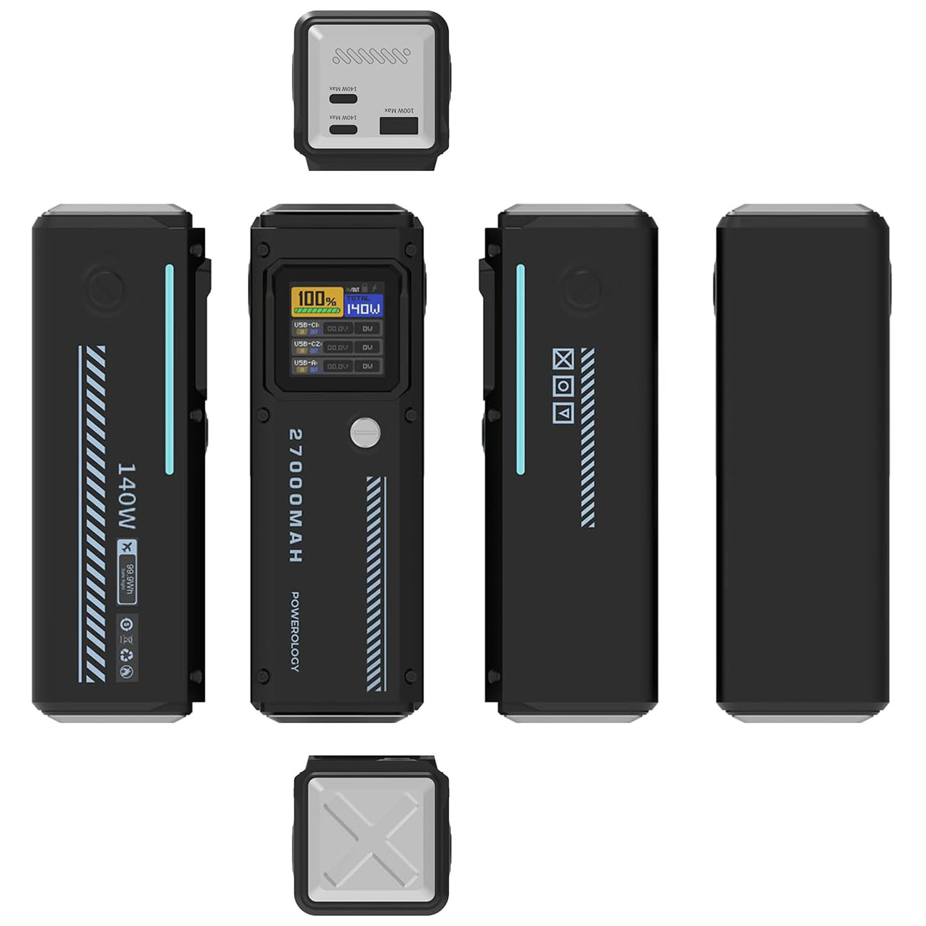 | خروجی USB-C1/C2 | 5V/3A, 9V/3A, 12V/3A, 15V/3A, 20V/5A (PD3.0), 28V/5A (PD3.1), حداکثر 140W |