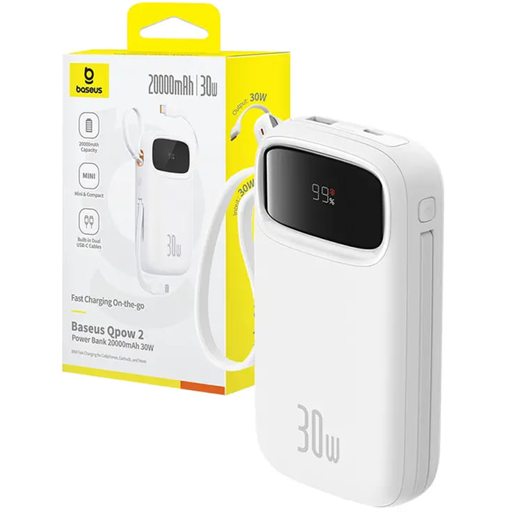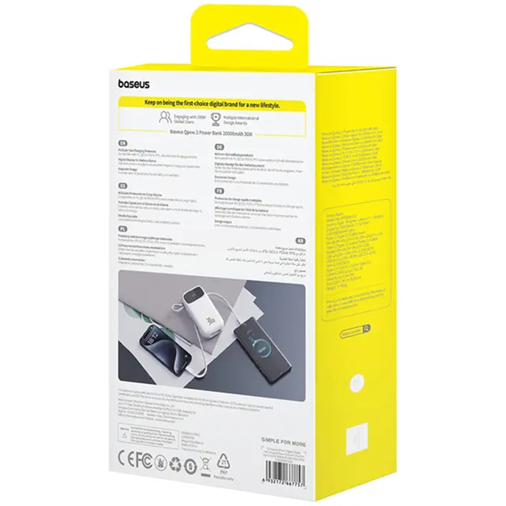 Baseus P10055009213 Qpow 2 PPQD4-20C 10000mAh Digital Display Fast Charge Power Bank 30W With Built-in Dual Type-C Cable