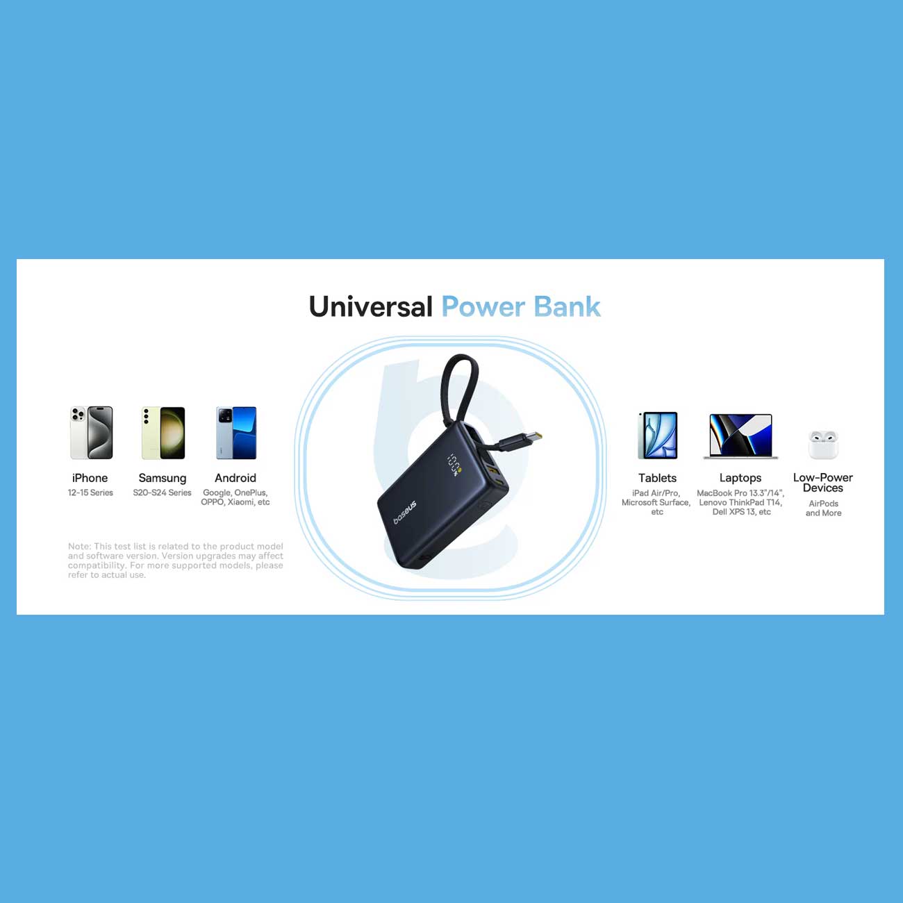 | توان خروجی | کابل تایپ سی: 5V⎓3A; 9V⎓3A; 12V⎓3A; 15V⎓3A; PPS 5⎓11V 5A (45W MAX) یواسبی: 5V⎓3A; 9V⎓2A; 12V⎓1.5A; 10V⎓2.25A (SCP) سه خروجی با هم: 5V⎓3A |