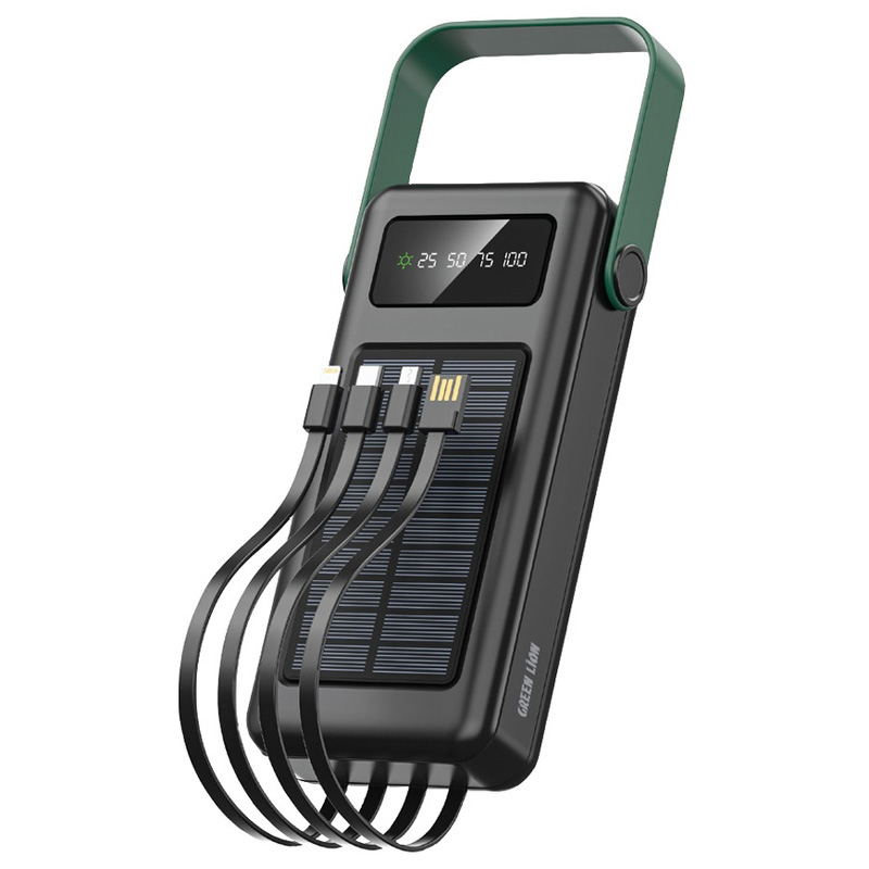 پاوربانک خورشیدی 30000 تایپ سی، لایتنینگ، یو اس بی و میکرو یو اس بی گرین لاین GNSLRPB30KBK