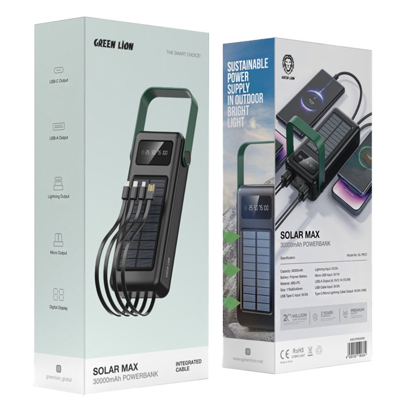 Green Lion Solar Max 30000mAh Powerbank GNSLRPB30KBK