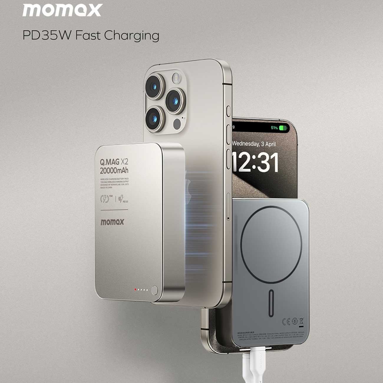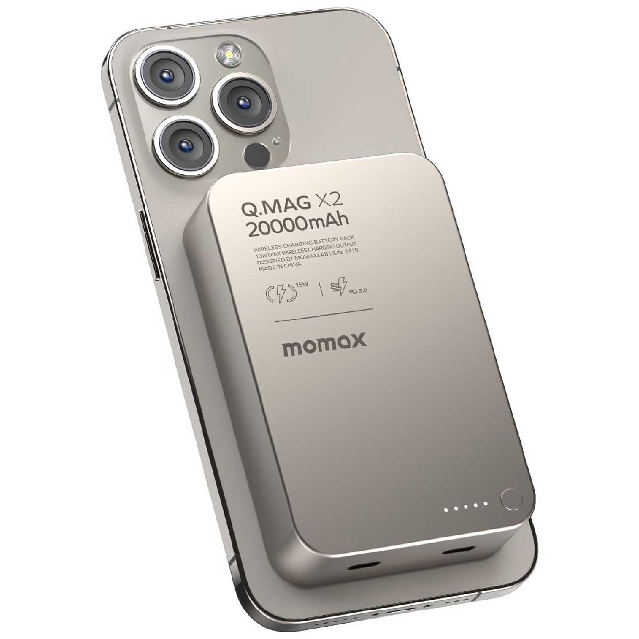 پاوربانک وایرلس 15 وات و تایپ سی 20 وات 20000 مومکس Q.MAG X2 IP133