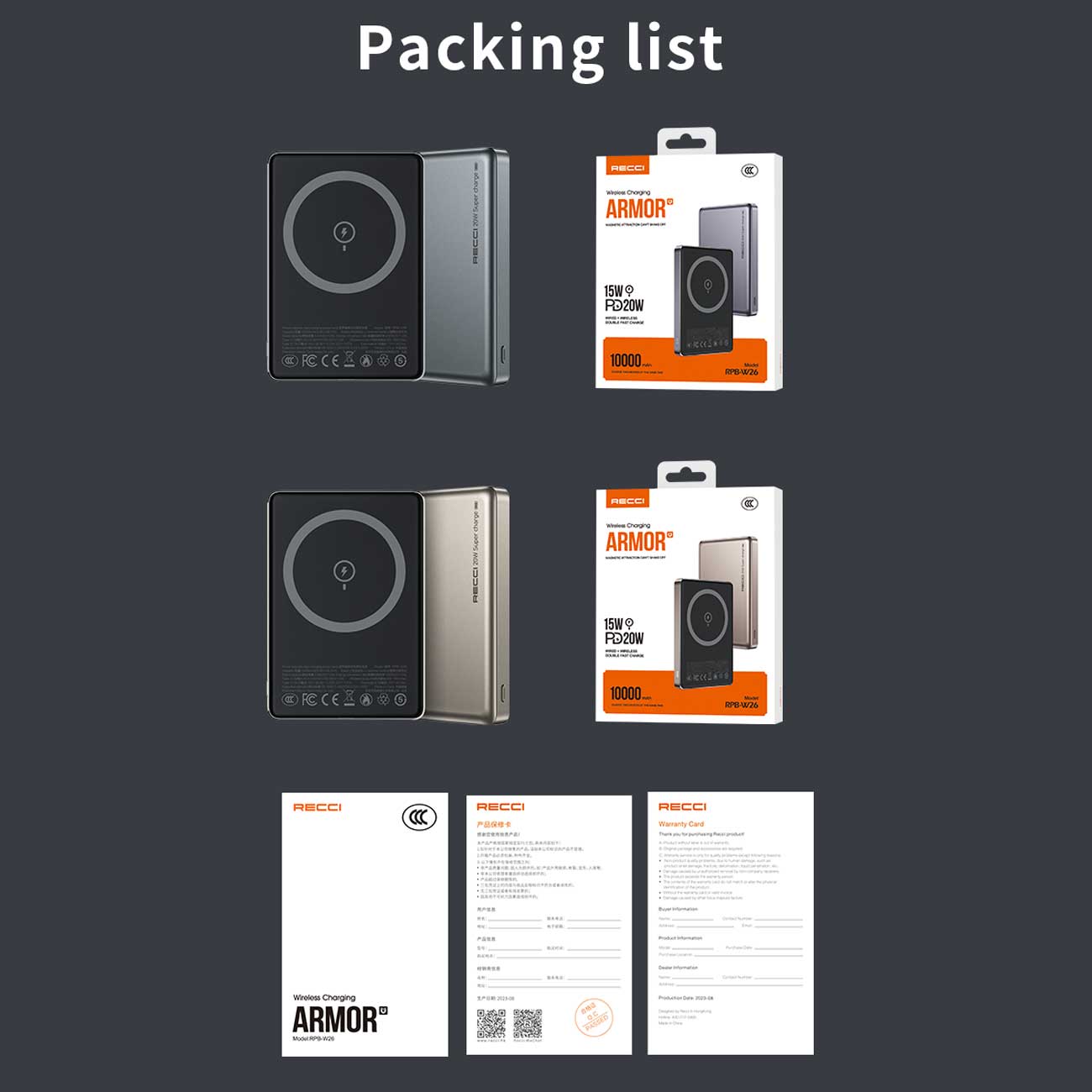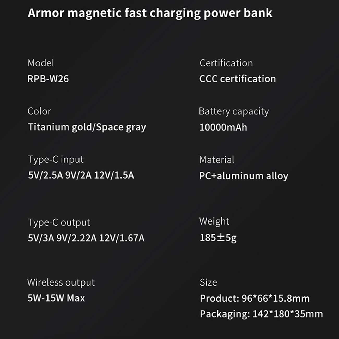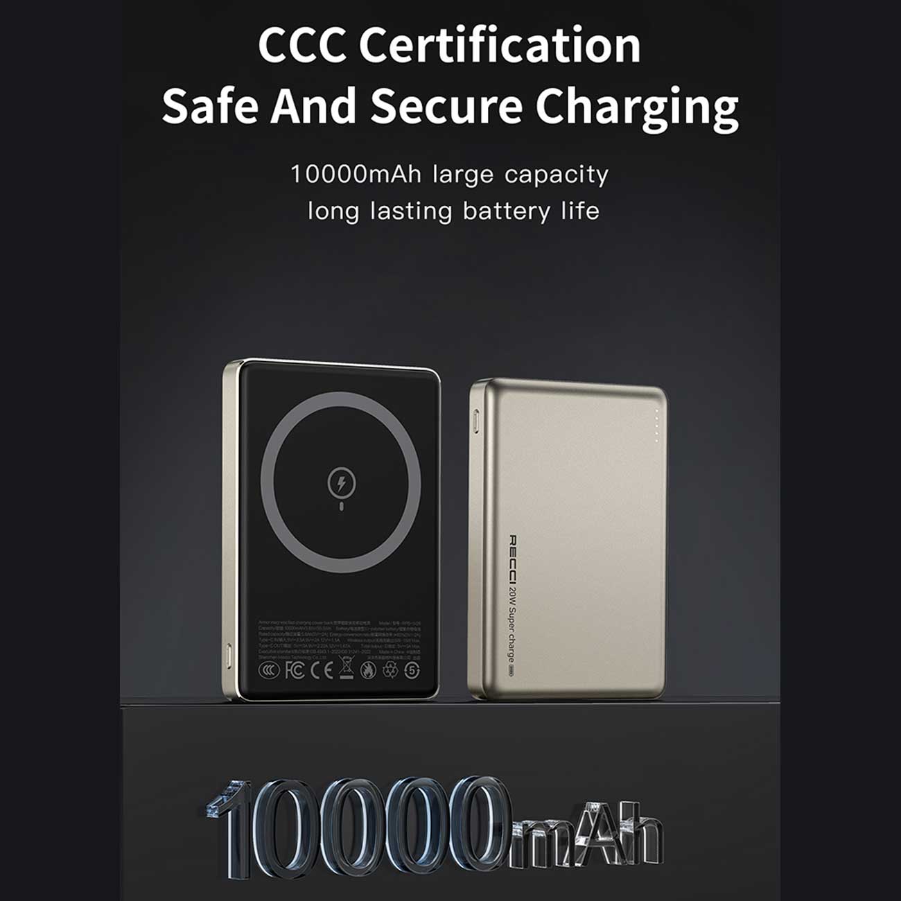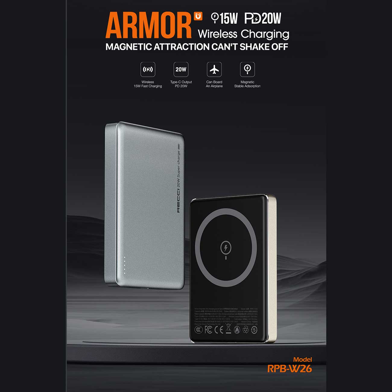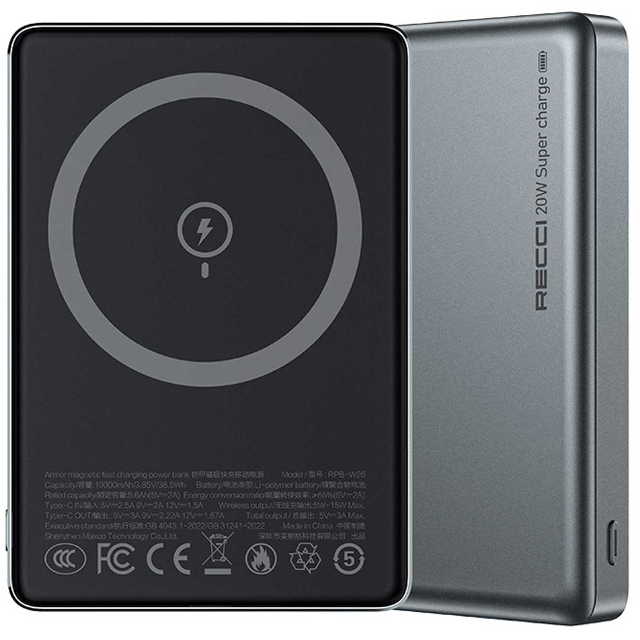 RECCI RPB-W26 PD20W+15W MAGNETIC WIRELESS POWER BANK 10000MAH