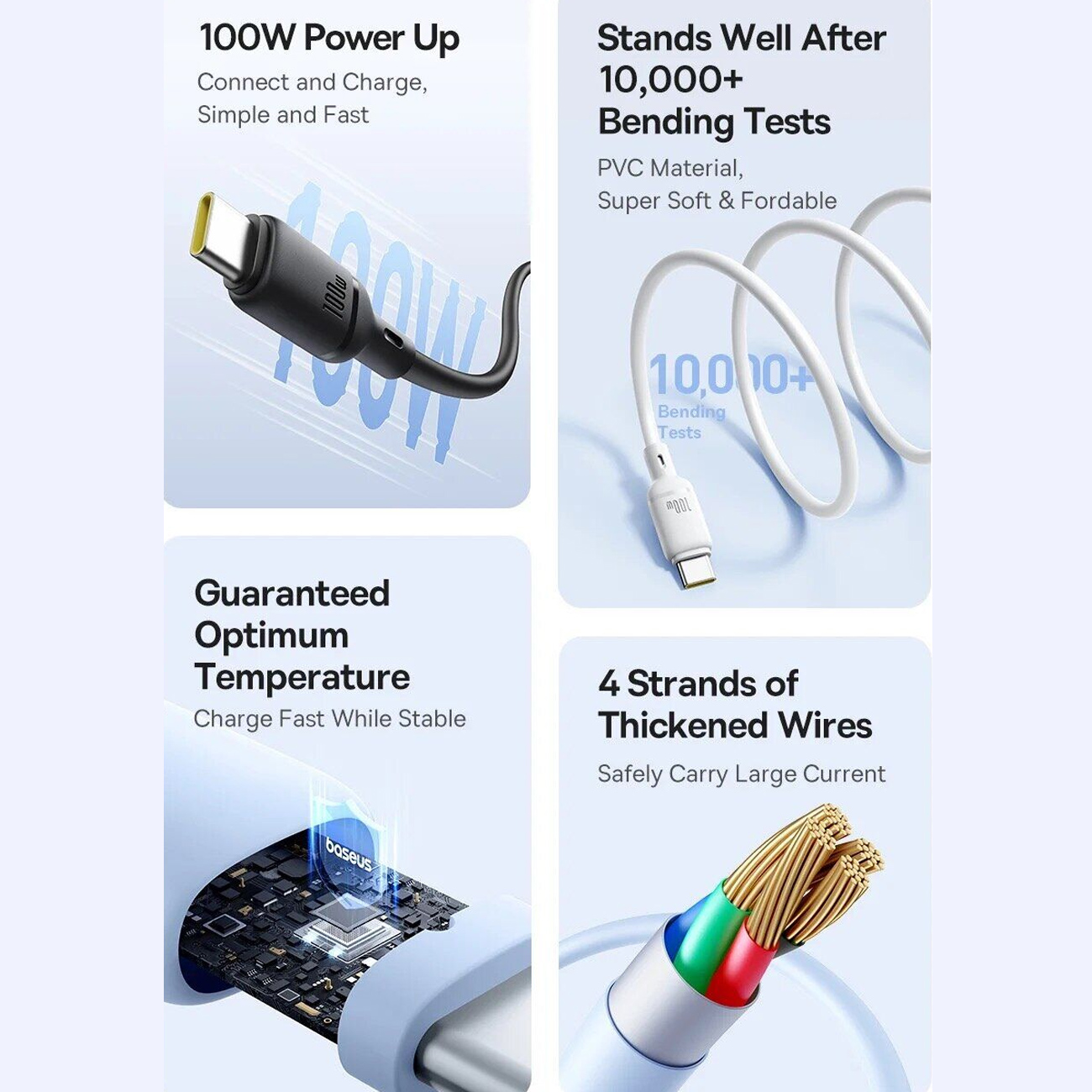 کابل سوپر فست شارژ USB به Type-c دو متری 100 وات بیسوس P10377703113-00 / P10377703213-00 / CB000113