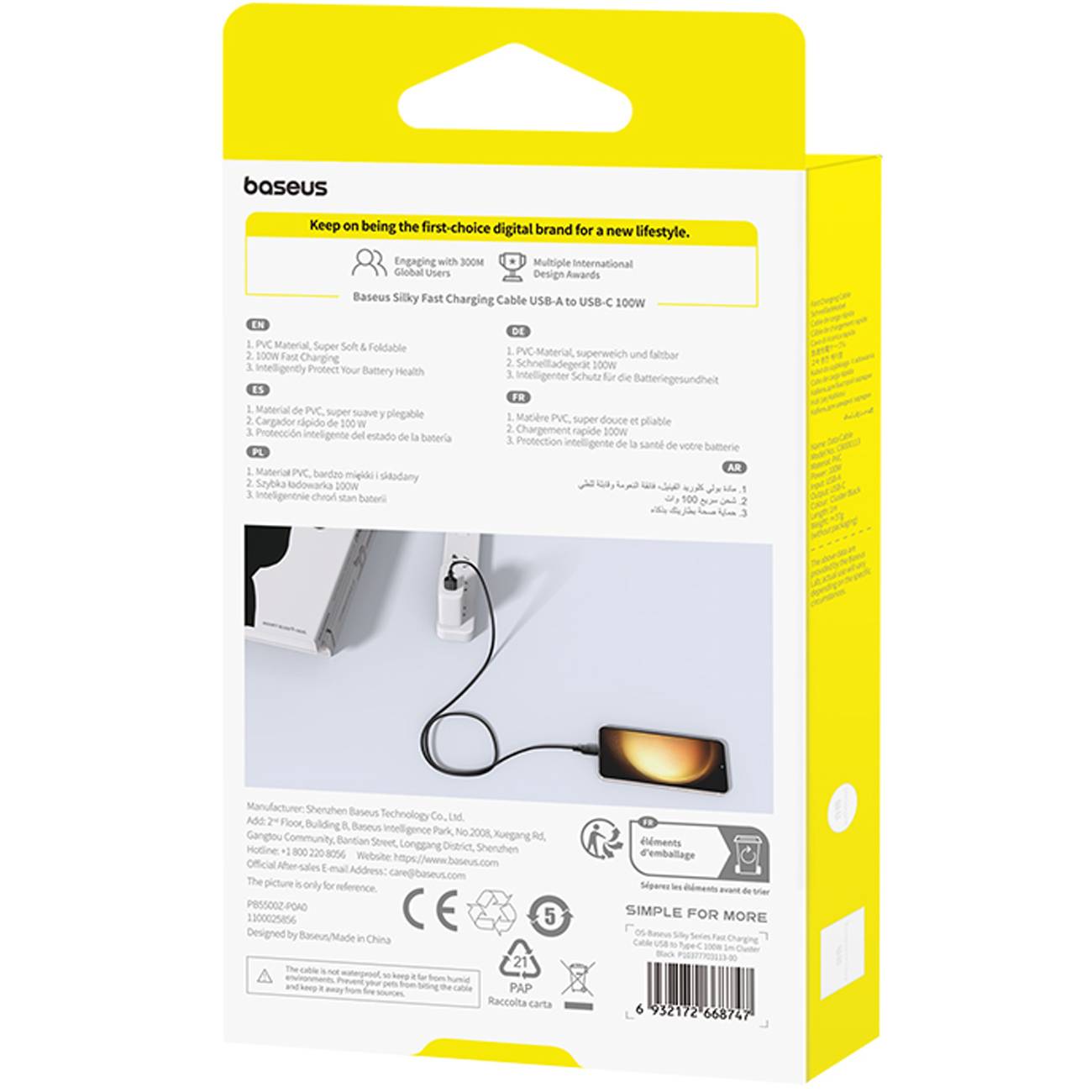 Baseus Silky Series Fast Charging Cable USB to Type-C 100W 2m P10377703113-00 / P10377703213-00 / CB000113