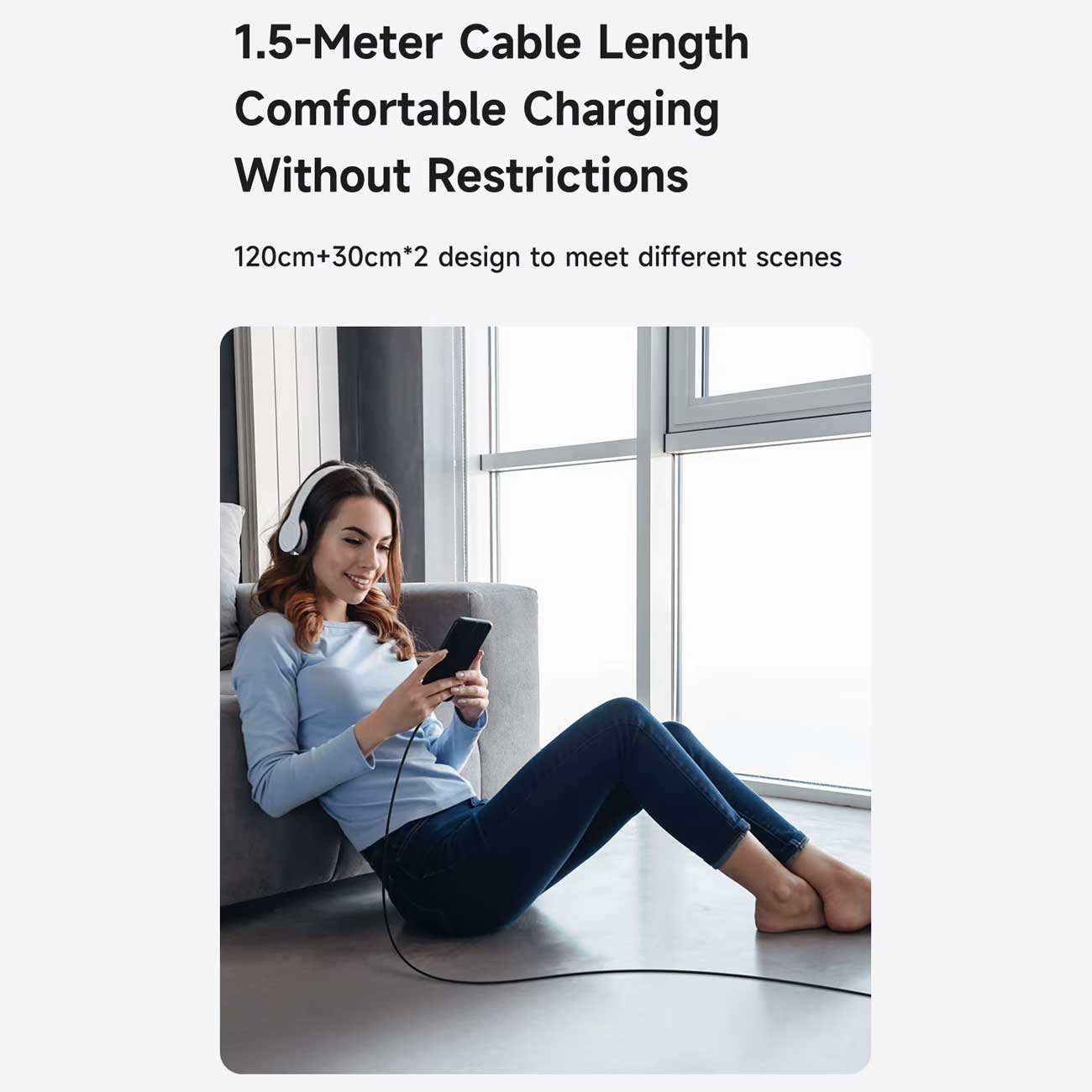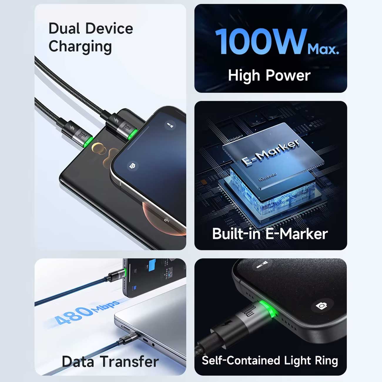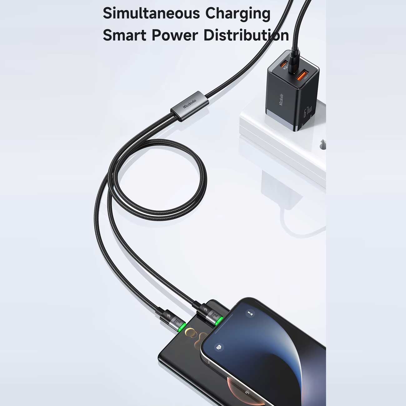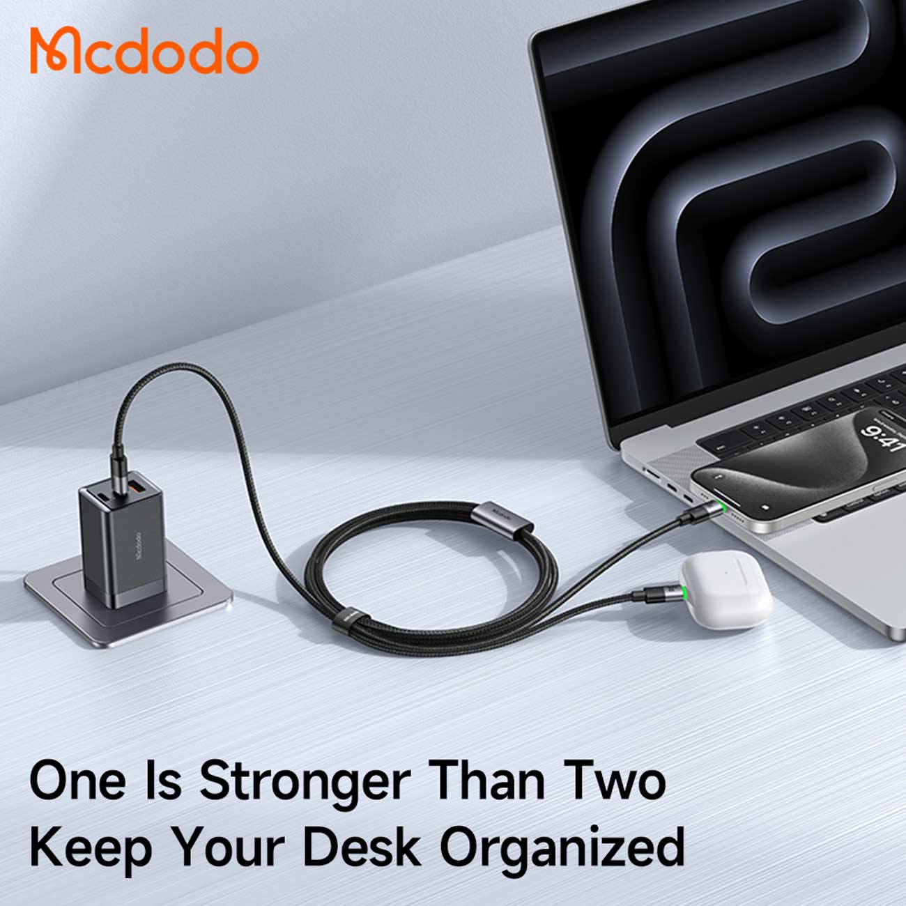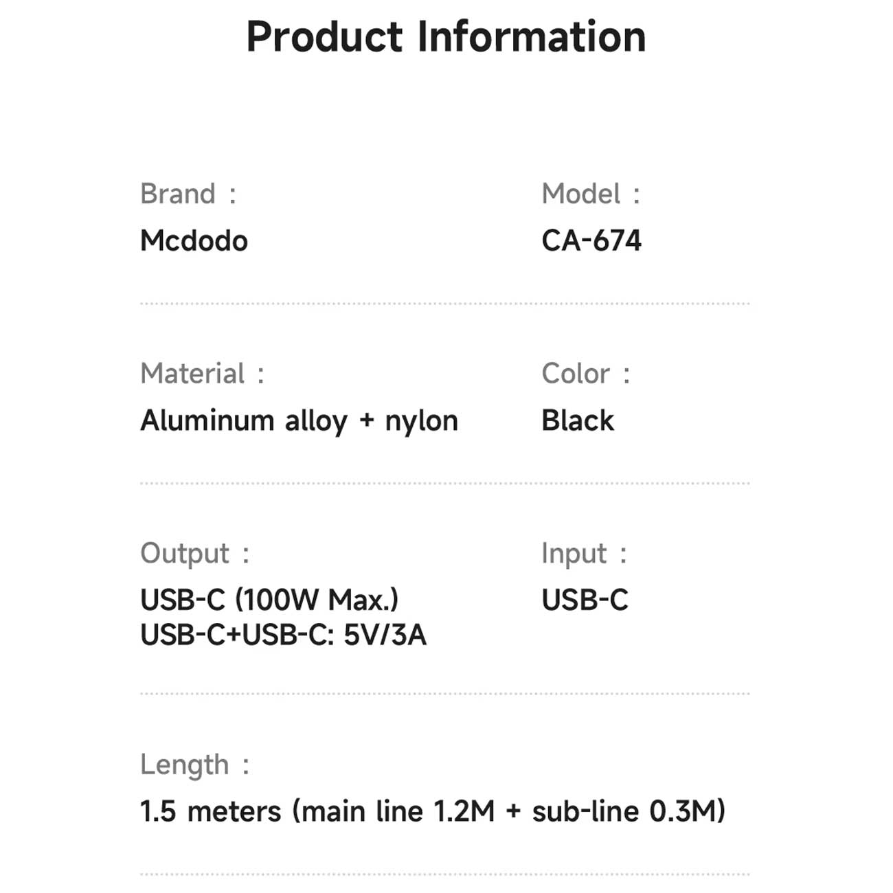 MCDODO CA-6740 2-in-1 USB-C Cable 100W Fast Charging Dual Type-C Ports Braided Cord 1.5m for Multiple Devices