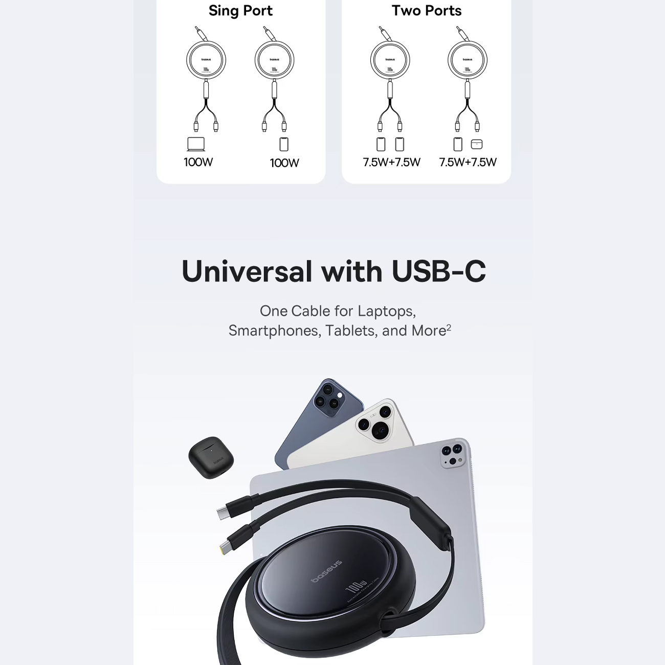 کابل جمع شونده تایپ سی به دو تایپسی 100 وات یک متری بیسوس Baseus CB000124/P10318602111