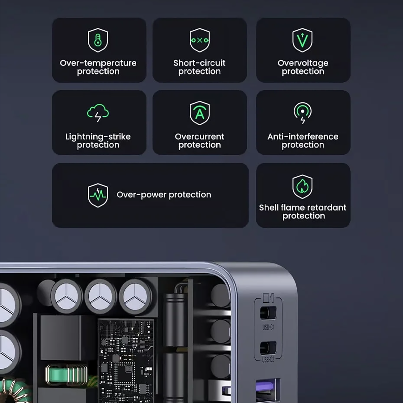 | استانداردهای شارژ سریع پشتیبانیشده | PD3.0 / PD2.0 / QC4+ / QC4.0 / QC3.0 / QC2.0 / PPS / AFC / APPLE 5V2.4A / SCP / FCP / BC1.2 |