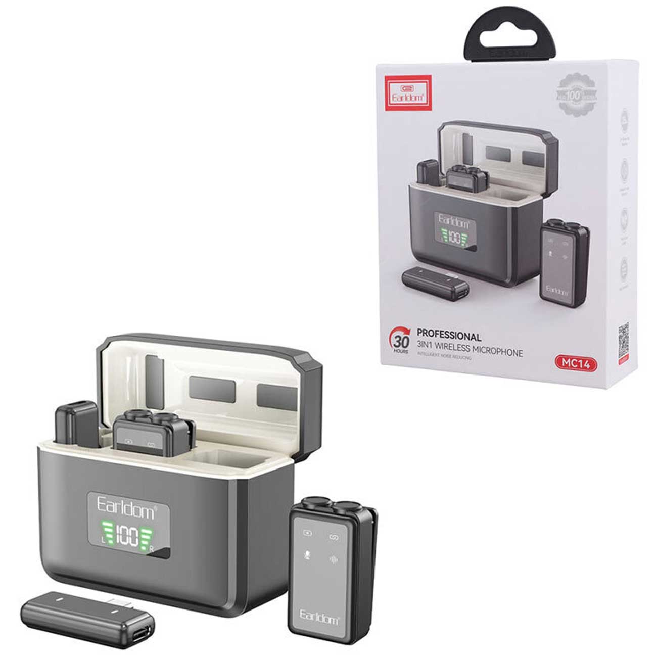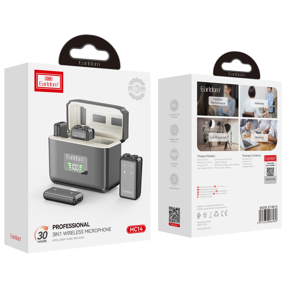میکروفن یقهای بیسیم تایپسی و لایتنینگ ارلدام MC14 دوکاربره همراه کیس شارژ