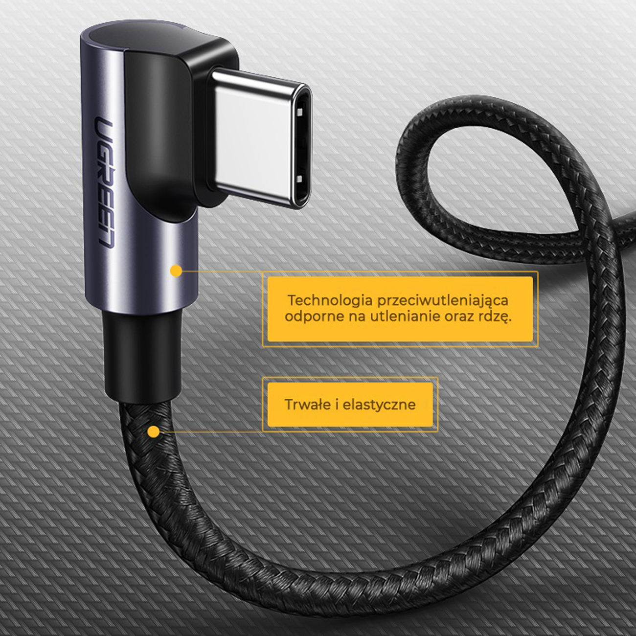 Ugreen angled cable USB Type C - USB Type C Power Delivery 60W 20V 3A 1m black-gray cable (US255 50123)
