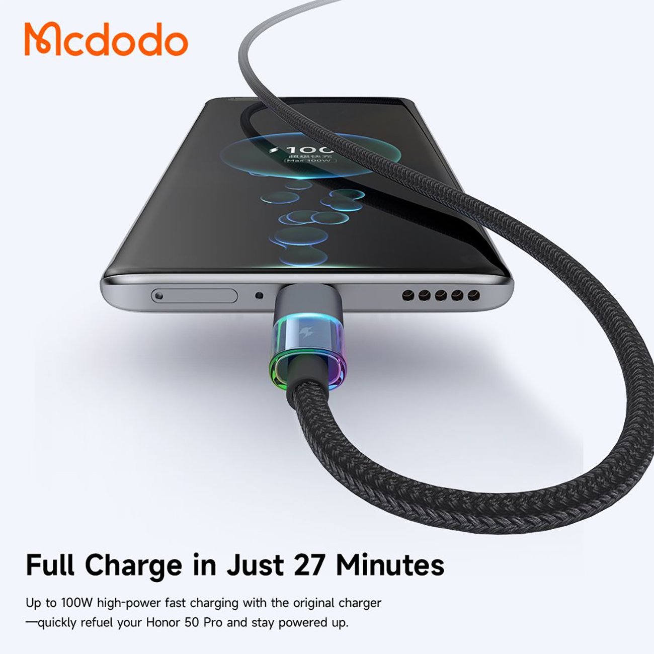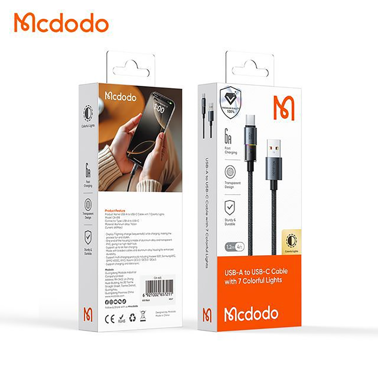 MCDODO CA-818 LED 100W 6A USB-A to Type-c With 7 Colorful Lights Data Cable 1.2m