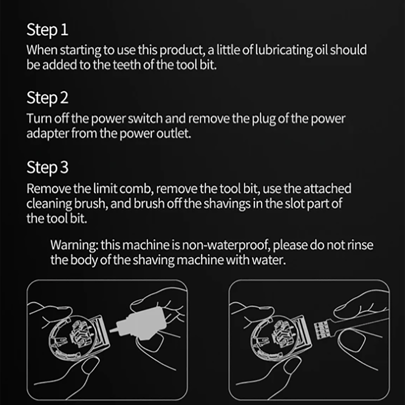 | اقلام همراه | روغن روان کننده، بُرس تمیز کننده، کابل شارژ تایپ سی، 4 عدد شانه اصلاح (در سایز های 3، 6، 9 و 12 میلی متر) و دفترچه راهنما |