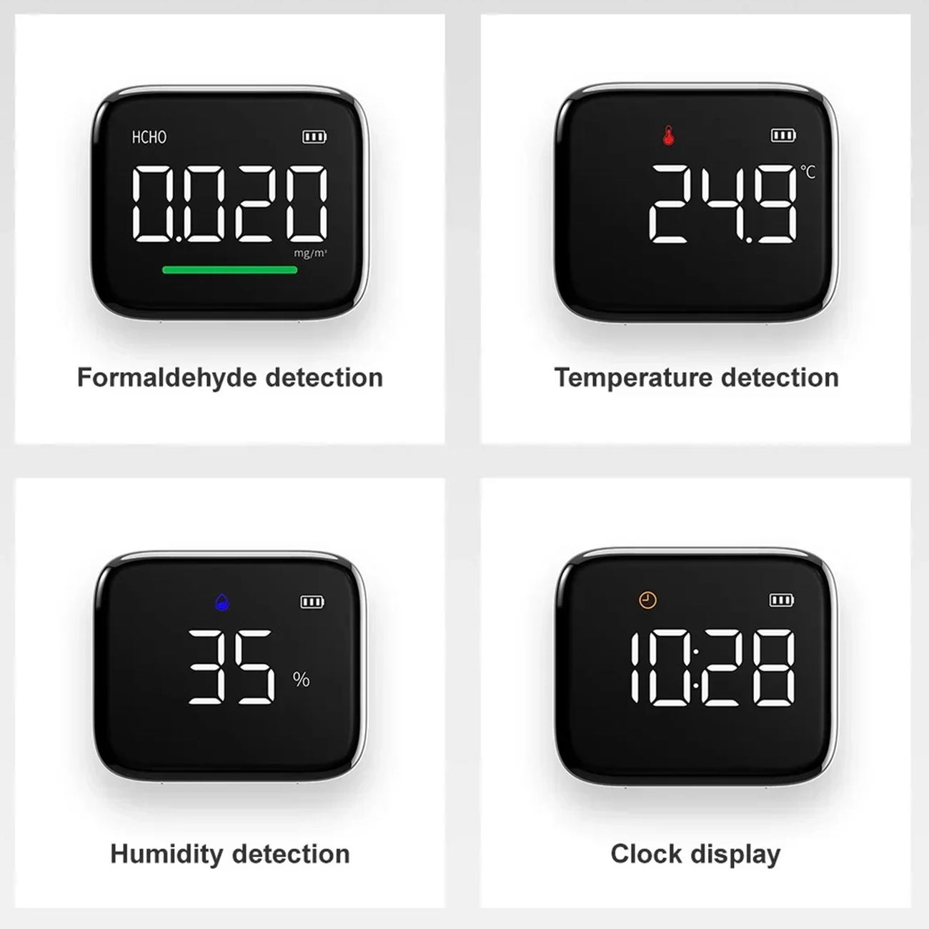 | نوع کاربرد | سنجش کیفیت هوا (فرمالدهید)، دماسنج، رطوبتسنج، ساعت |