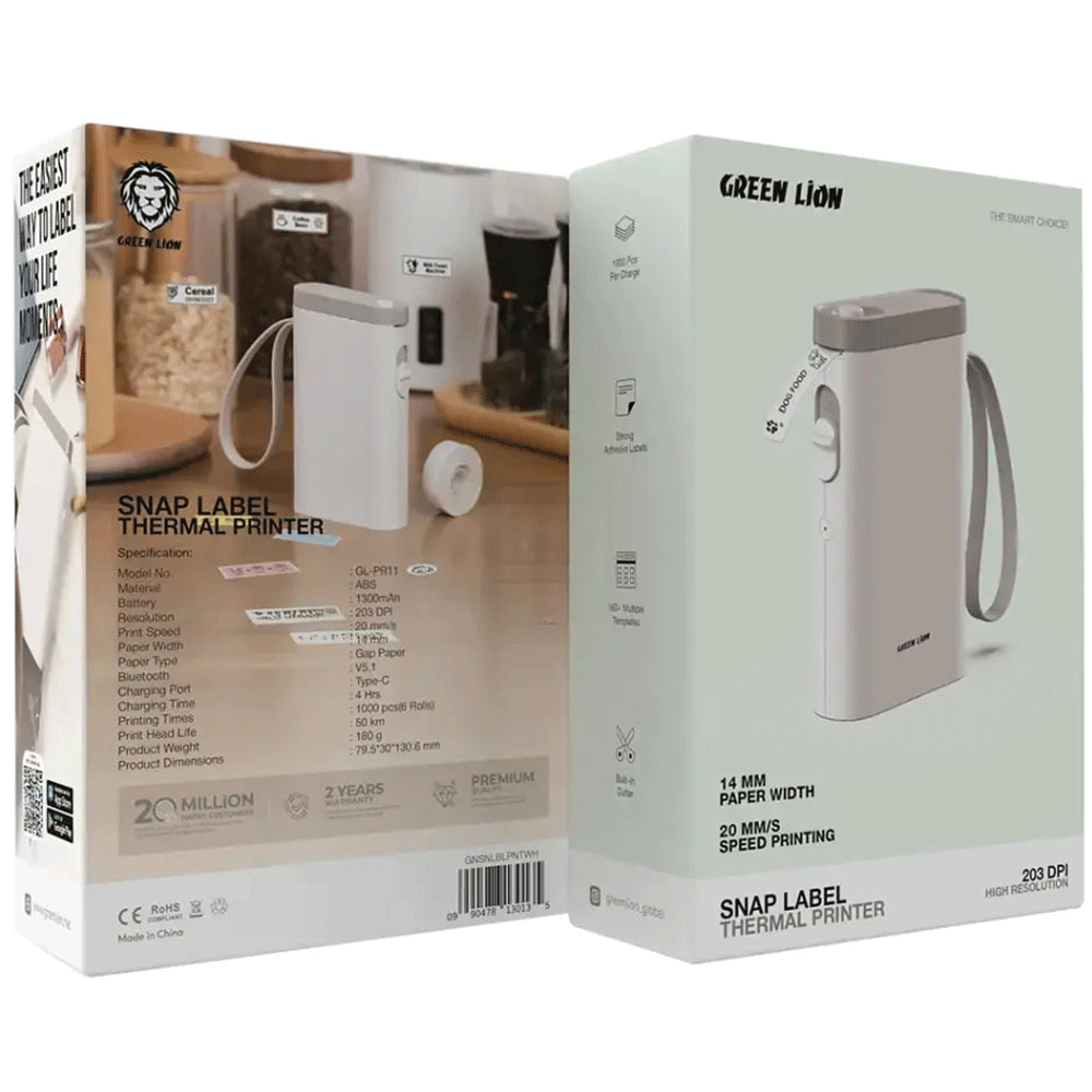 مینی پرینتر شارژی حرارتی برچسب گرینلاین Green Lion GNSNLBLPNTWH GL-PR11