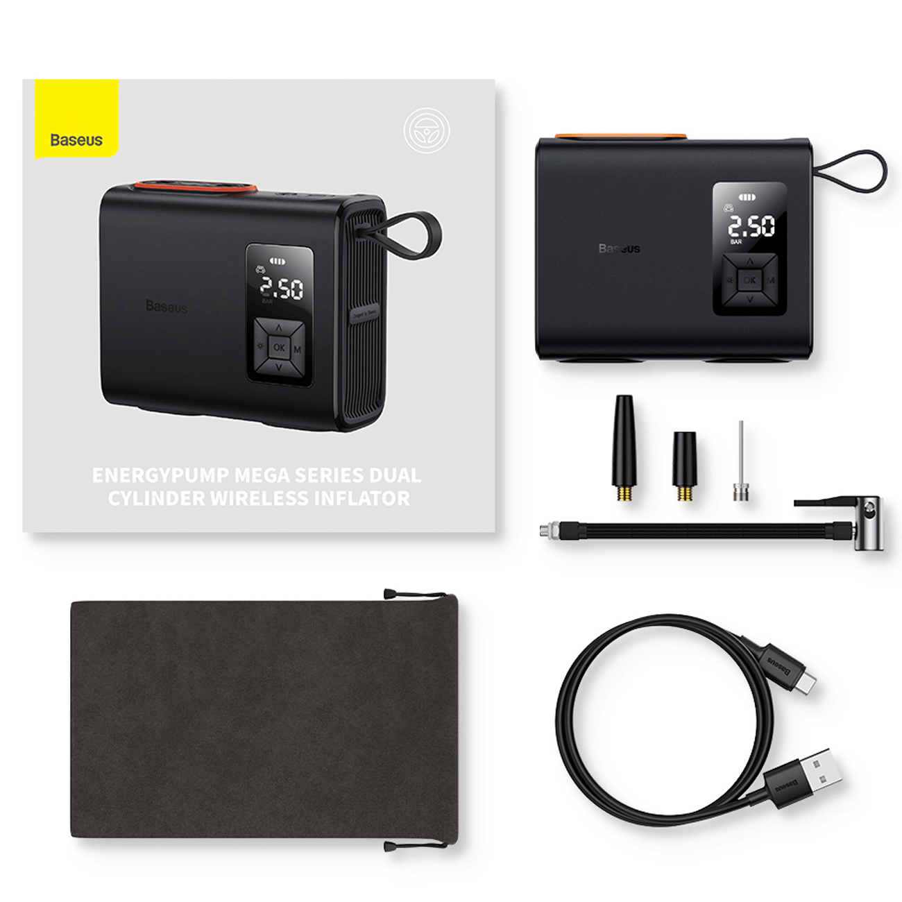 پمپ باد و چراغ قوه شارژی بیسوس مدل BS-CG007 یک دستگاه چندکاره و کاربردی برای استفاده در خودرو، دوچرخه، موتور، کمپینگ و فعالیتهای فضای باز است. این محصول با طراحی جمعوجور و سبک، امکان شارژ سریع، باد کردن لاستیکها و روشنایی اضطراری را فراهم میکند و همراه ایدهآل برای سفر، پیکنیک و ماجراجوییهای بیرونی است.