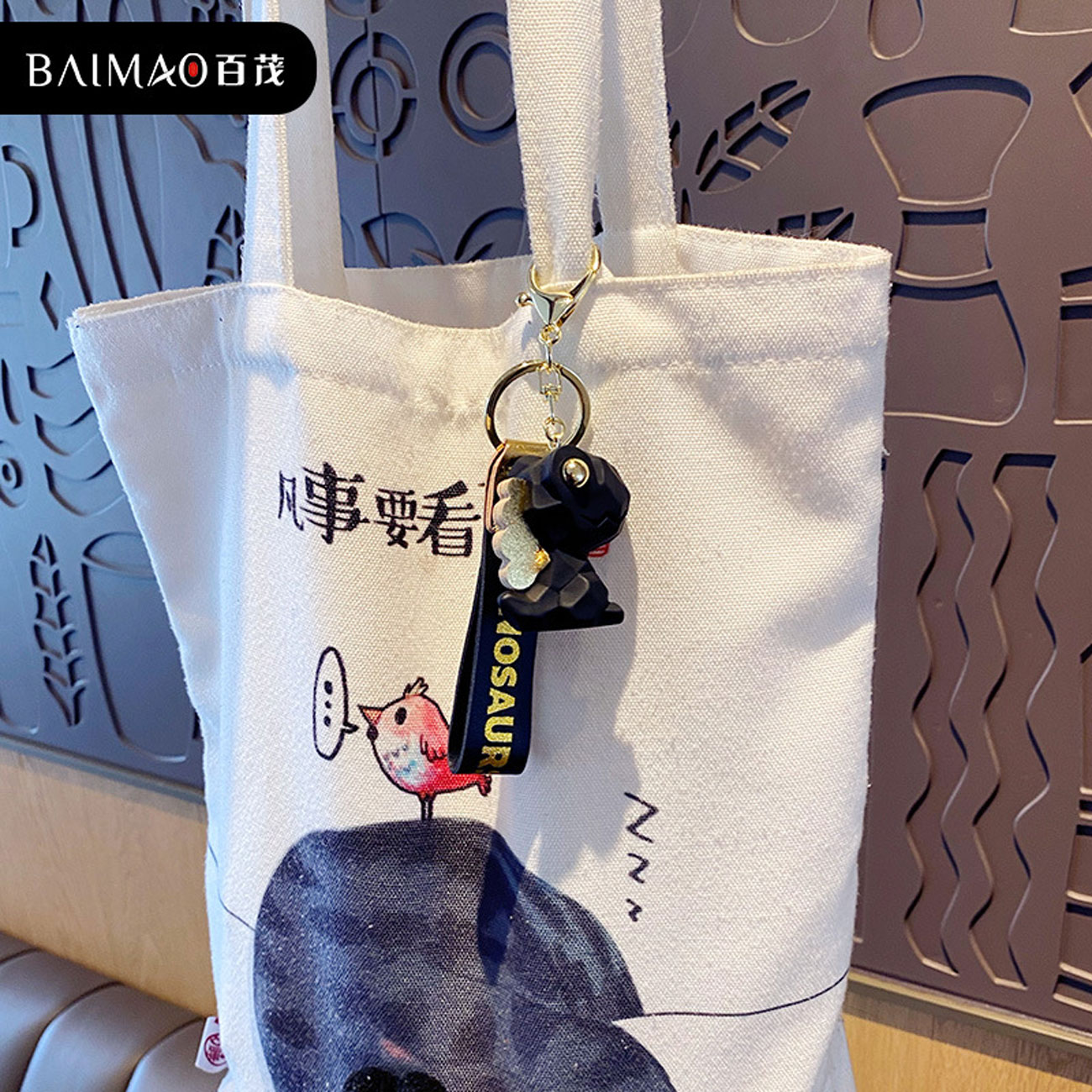 Bai Mao key pendant couple key chain ring school bag pendant Q