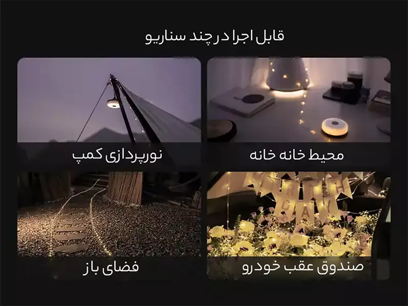 | کاربری بالا | مناسب برای استفاده در سفر، کمپ و دکوراسیون منزل |