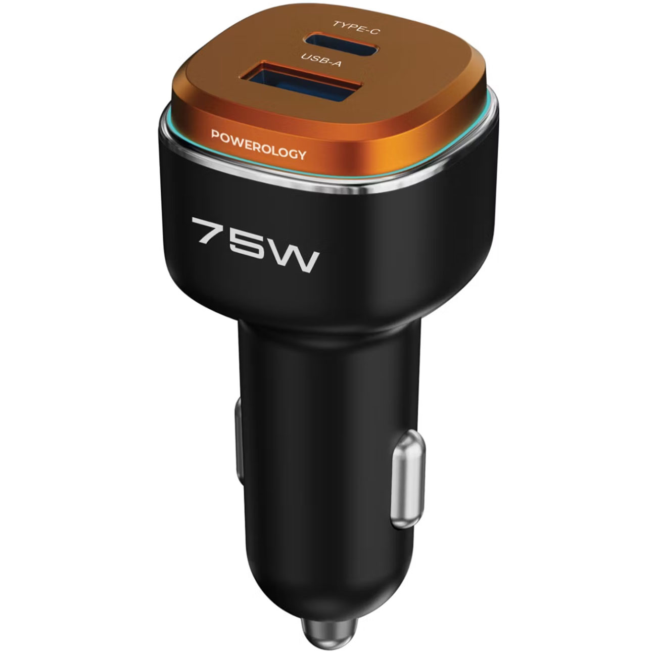 شارژر فندکی با دو پورت از برند پاورولوژی مدل PCCSR024BKOG با توان ۷۵ وات گزینهای عالی برای شارژ سریع و همزمان دو دستگاه در خودرو است. این محصول با طراحی جمعوجور، بدنه مقاوم و پوشش با کیفیت، ترکیبی از دوام و زیبایی را ارائه میدهد.