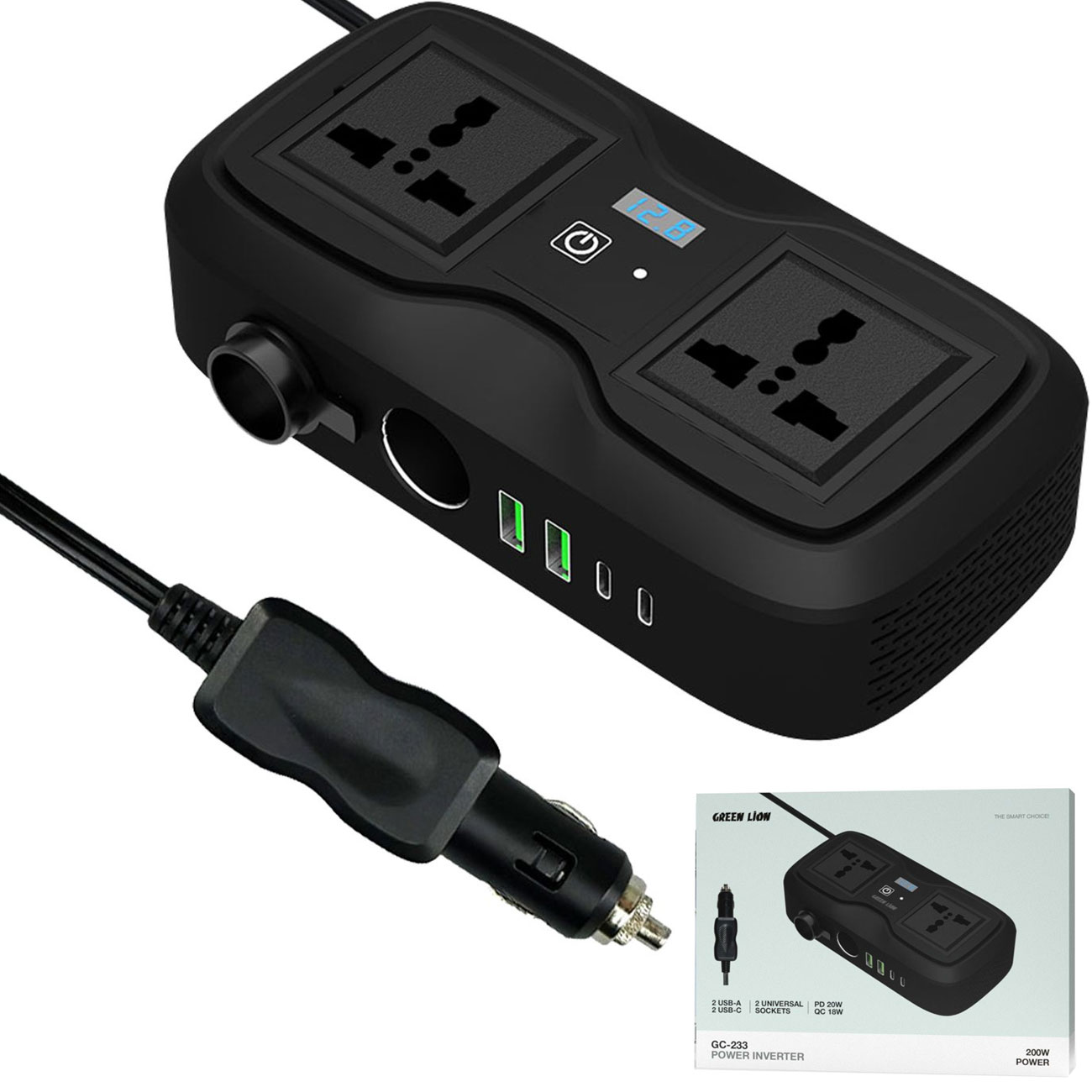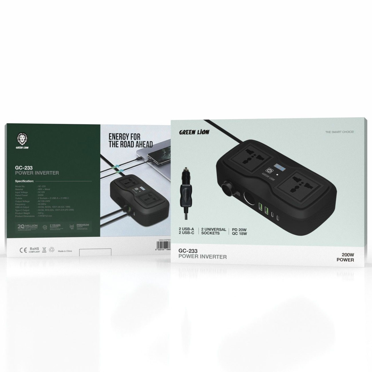 اینورتر فندکی خودرو گرین لاین Green Lion مدل GC-233 توان 200 وات