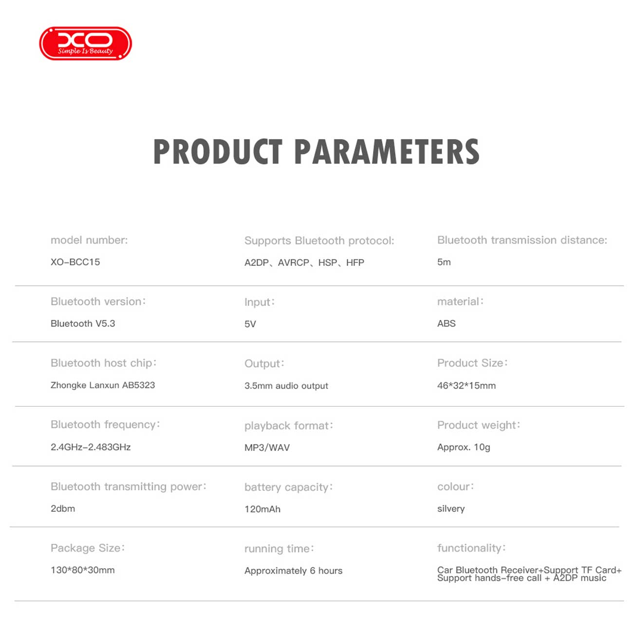 گیرنده بلوتوثی صوتی جک 3.5 میلیمتری ایکس او BCC15