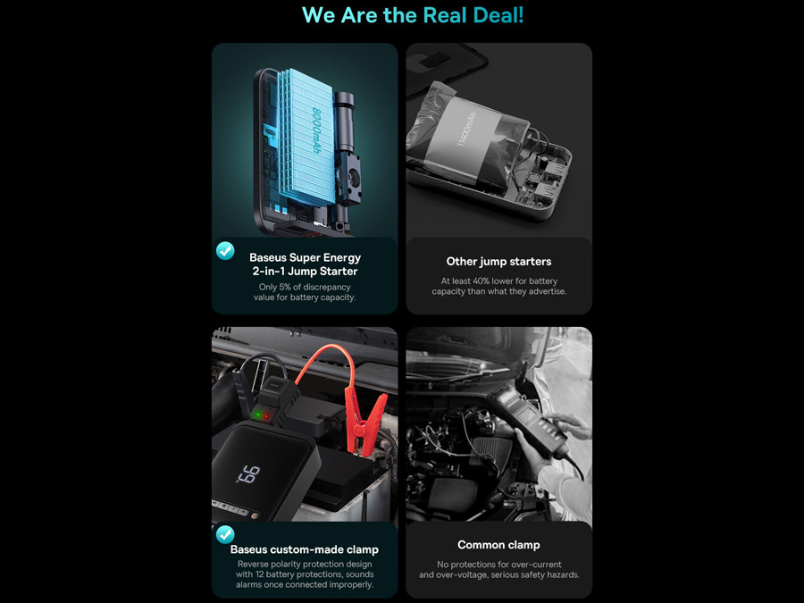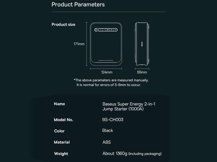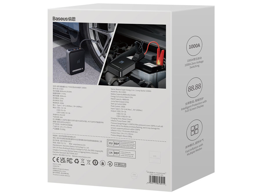 پاور بانک و جامپ استارتر قابل حمل خودرو بیسوس Baseus super energy 2-in-1 jump starter 1000A BS-CH003 یکی از محصولات کمپانی بیسوس است که از حداکثر جریان 1000 آمپر برخوردار بوده و علاوه بر جامپاستارتر به عنوان پاوربانک و پمپ باد هم قابل استفاده است.