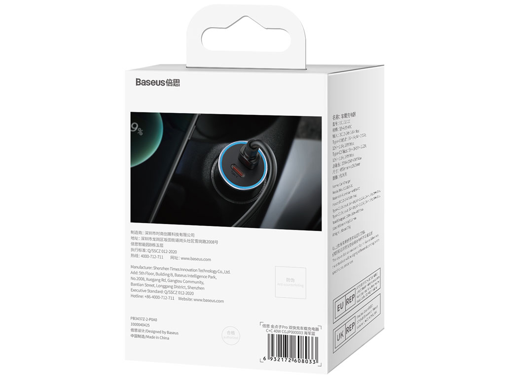 شارژر فندکی فست شارژ ماشین تایپسی 40 وات بیسوس GJP000013