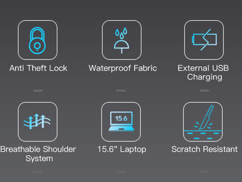 کوله پشتی ضد آب و ضد سرقت دارای پورت یو اس بی مدل 22188 با داشتن دسته بادوام و پارچه ضد آب و قفل ضد سرقت از امنیت برجسته ای برخوردار است. این کوله پشتی برای حمل بسیاری لوازم حساس و مهم مانند لپتاپ، آی پد، هدفون، لباس و ... طراحی شده است.