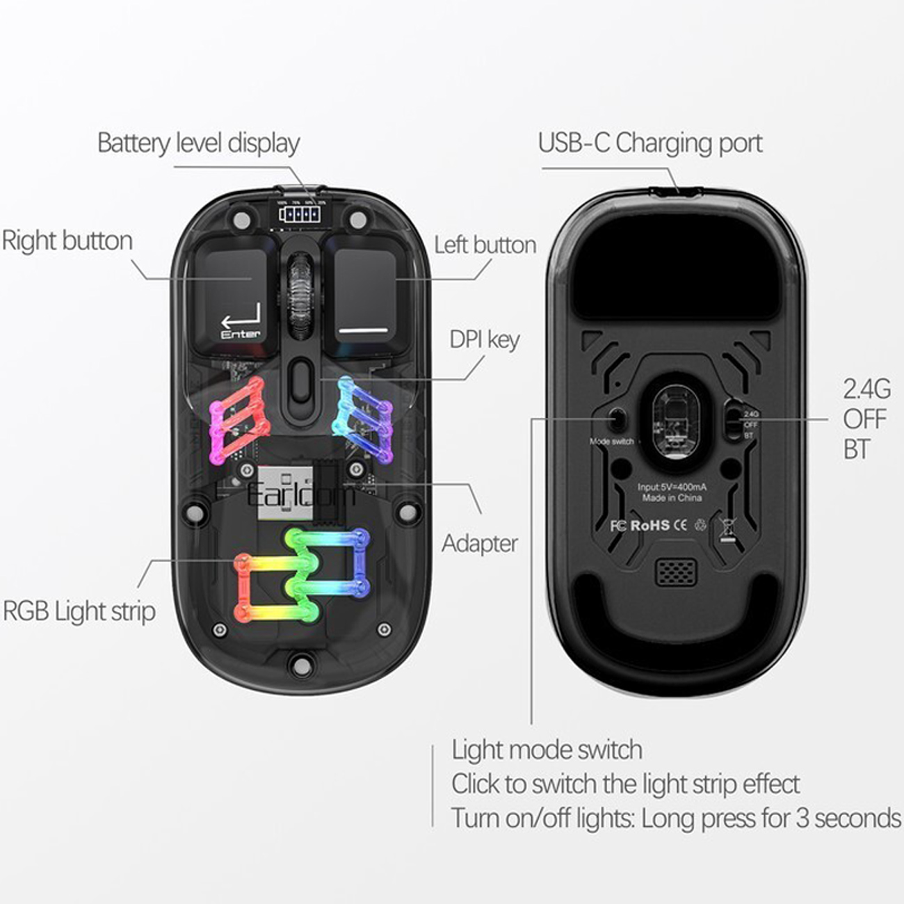 Earldom KM16 1600 DPI Transparent RGB Wireless Office Mouse