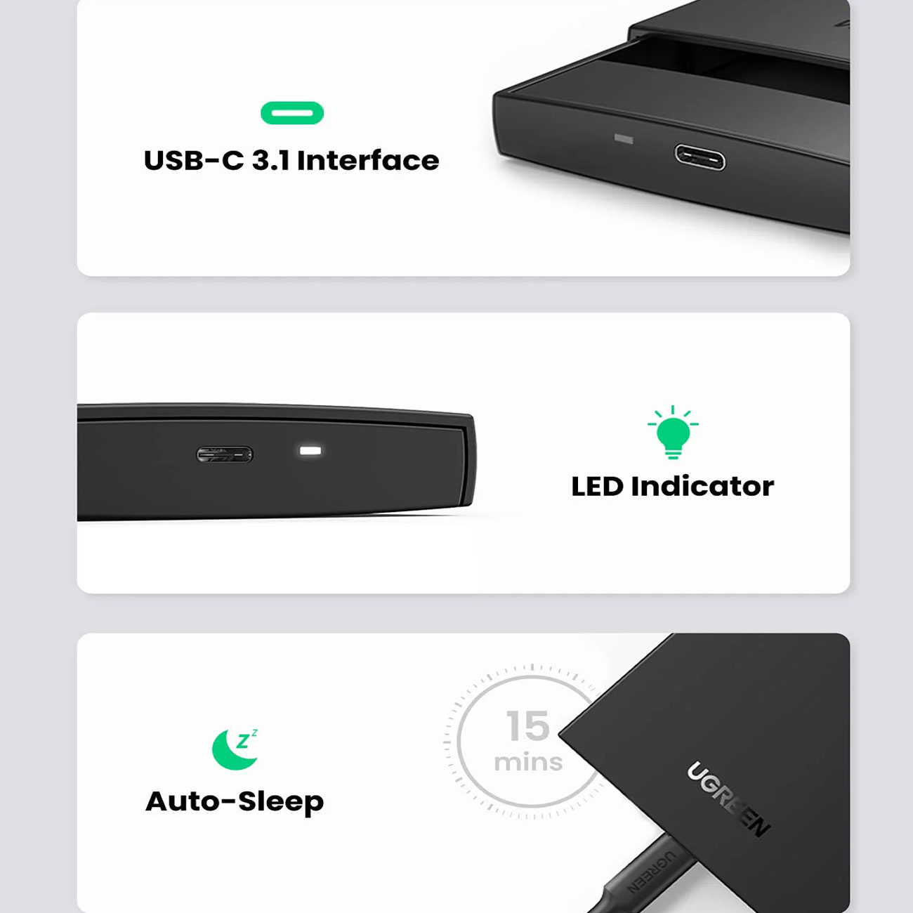 UGREEN Enclosure USB3.0 for 2.5" for HDD and SSD US221/30848