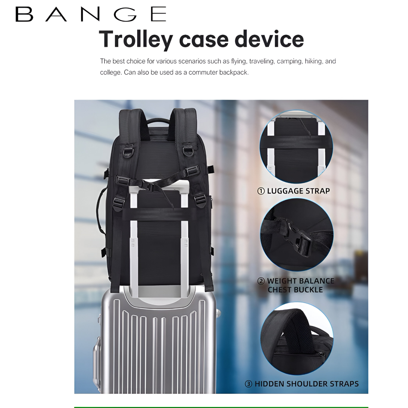 کوله پشتی مسافرتی لپ تاپ 17.3 اینچ و آیپد 12.9 اینچ ضدآب 40 لیتر بنج Bange BG-1916