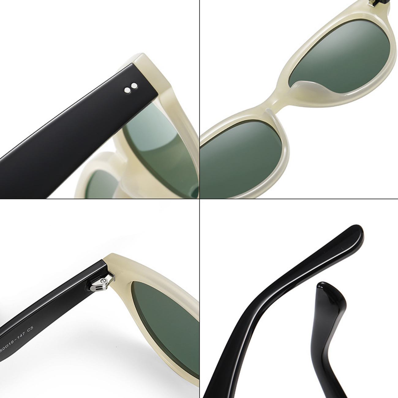 | رنگ بندی | مشکی خاکستری C1، کدویی خاکستری C2، راه راه قهوه ای C3، طوسی شفاف صورتی گرادینت C4، فریم بژ با دسته مشکی لنز G15 C5 |