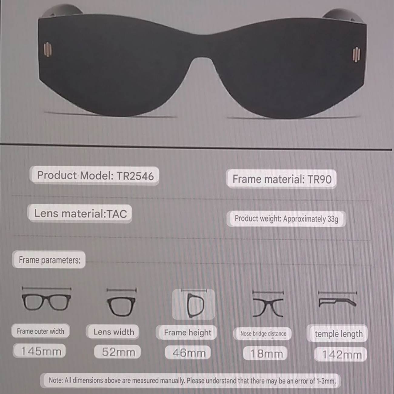 | جنس | فریم: TR90، لنز: TAC |