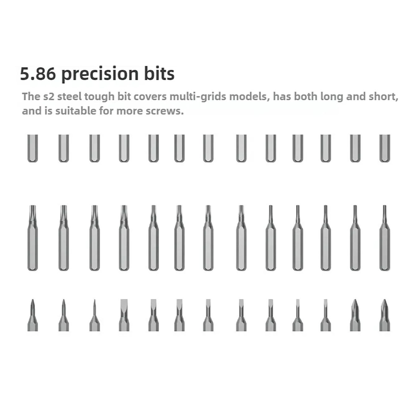 - تنوع سری (بیت): شامل 86 ترکیب از تیغههای بلند و کوتاه با اشکال مختلف (مانند آلن، ستارهای، دوسو، سه سو و…) برای سازگاری با طیف وسیعی از پیچها.