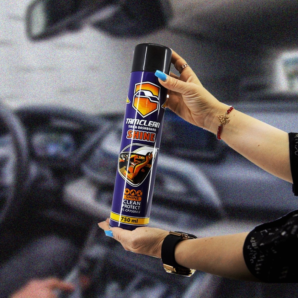 اسپری براق کننده داشبورد و لاستیک تام کلین حجم ۷۵۰ میلی لیتر.